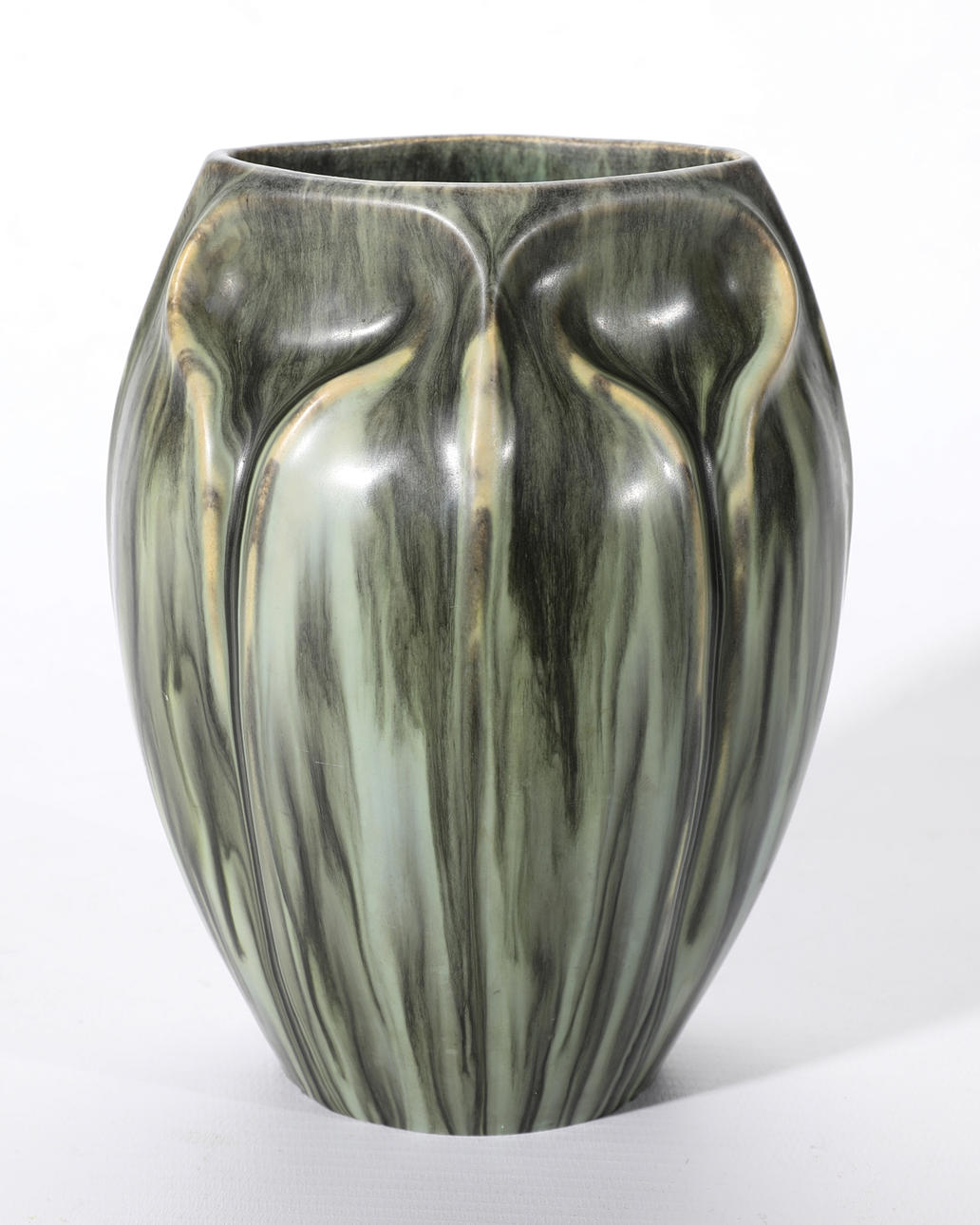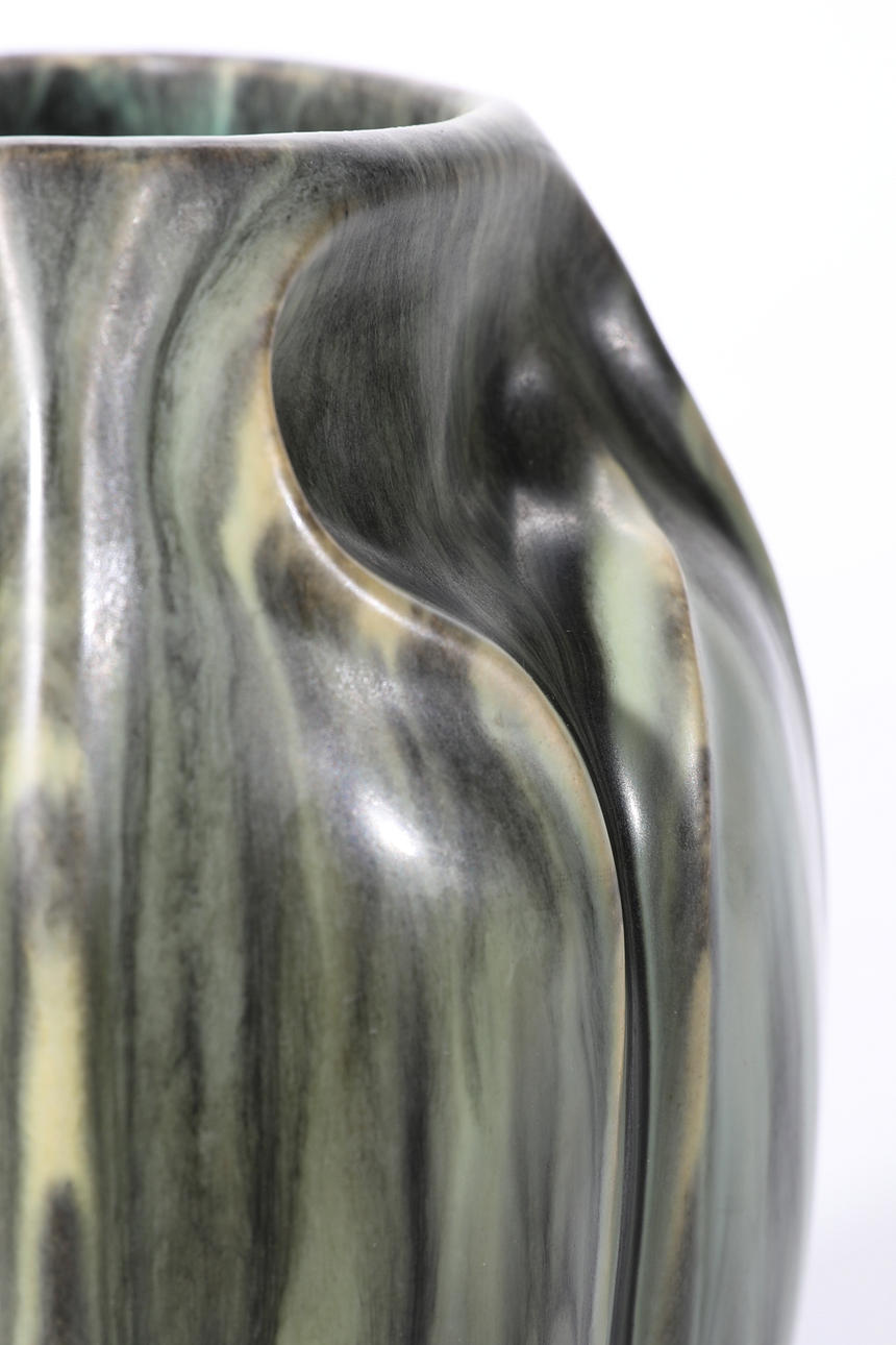 4 Art Nouveau vases. Around 1900/1910. pottery. Polychrome silk matt running glazes, partially ox blood/ Sang de Boeuf. H. 16.2cm/ 12.3cm/ 10.7cm/ 10.7cm. Marked on the bottom with workshop marks (Baudin St. Briac/ Baudin/ Baudin/ Poterie de Monaco Baudin (scratched).