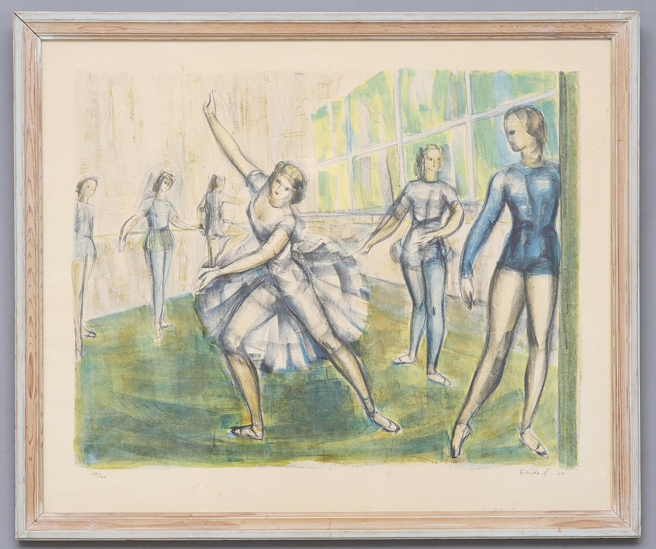 2137190. GERDA ÅKESSON. color lithograph, ballet dance, signed, dated -50, numbered 126/260.