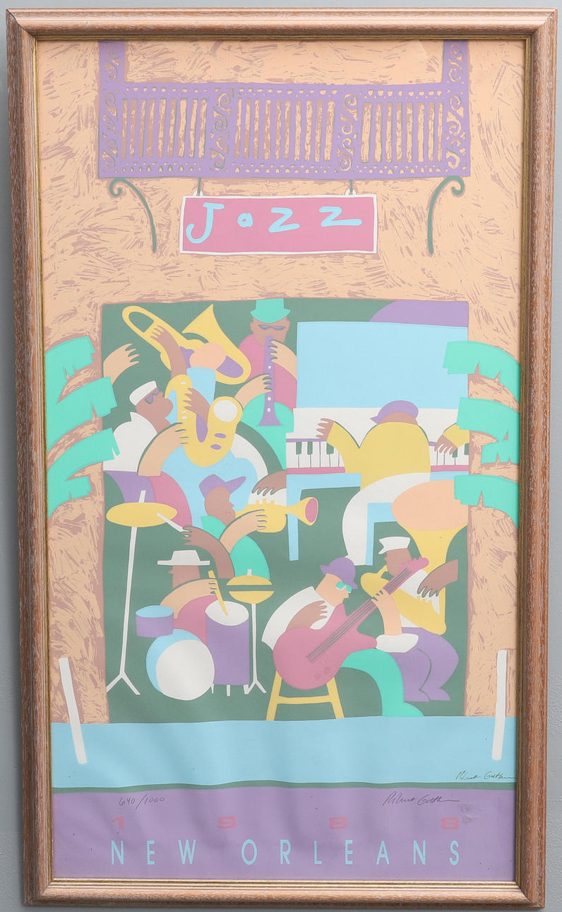 artist signed limited edition print, no. 640/1000, 85cm x 47cm, framed, 90 x 53cm overall.