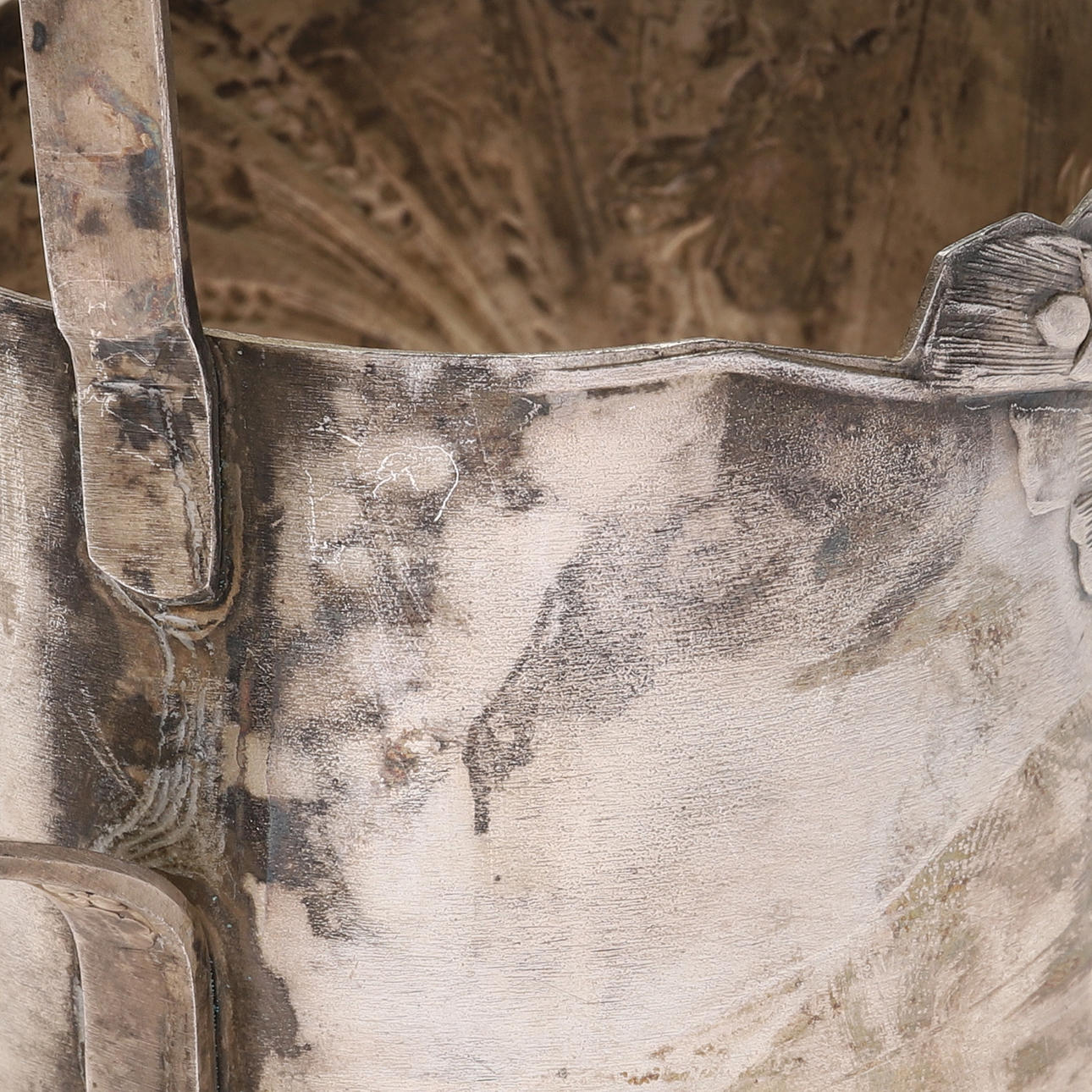Normal wear and tear. Scratches. Stains. Glass inserts are missing.