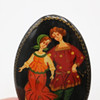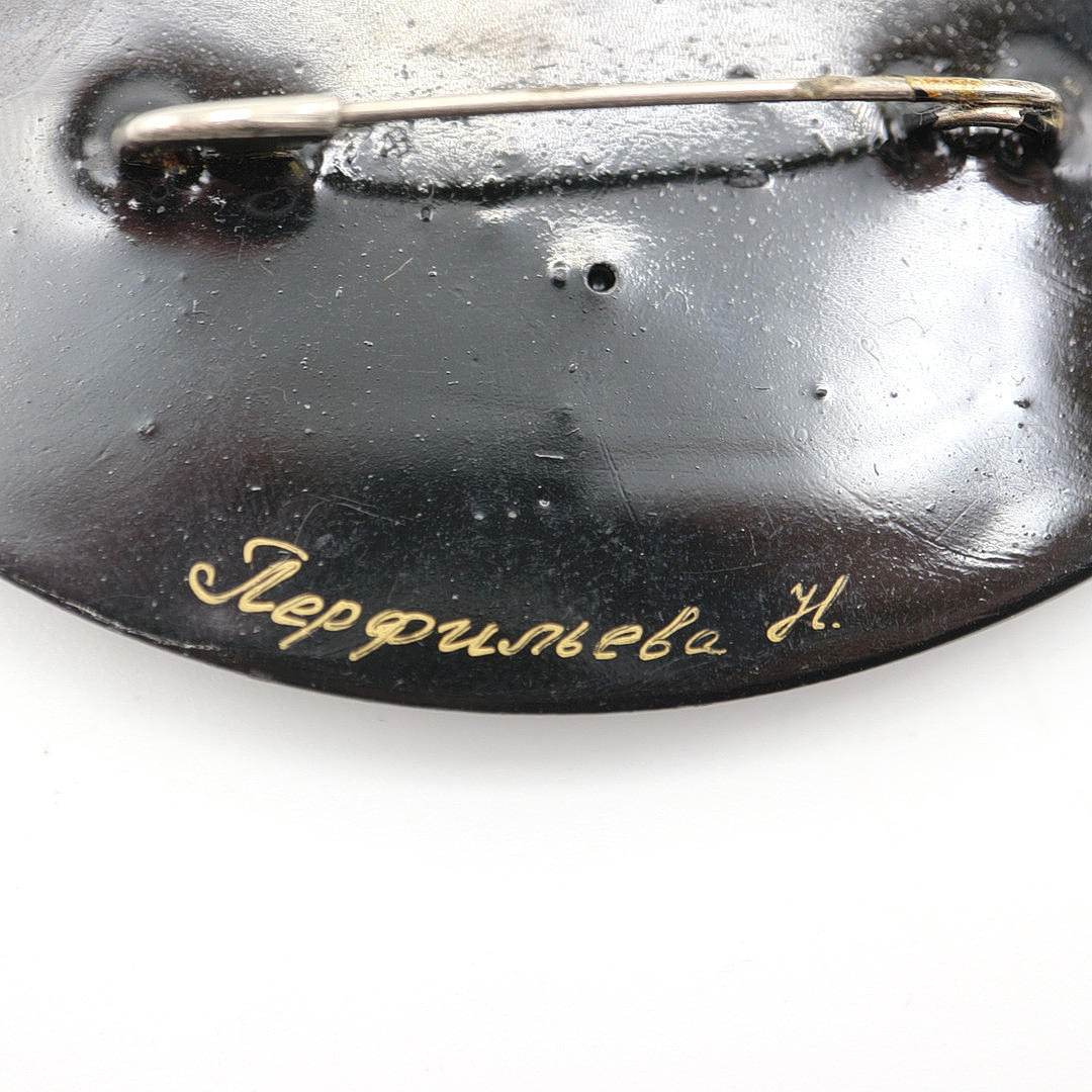 Russian lacquer painting brooch, lovers, hand-painted, signed.