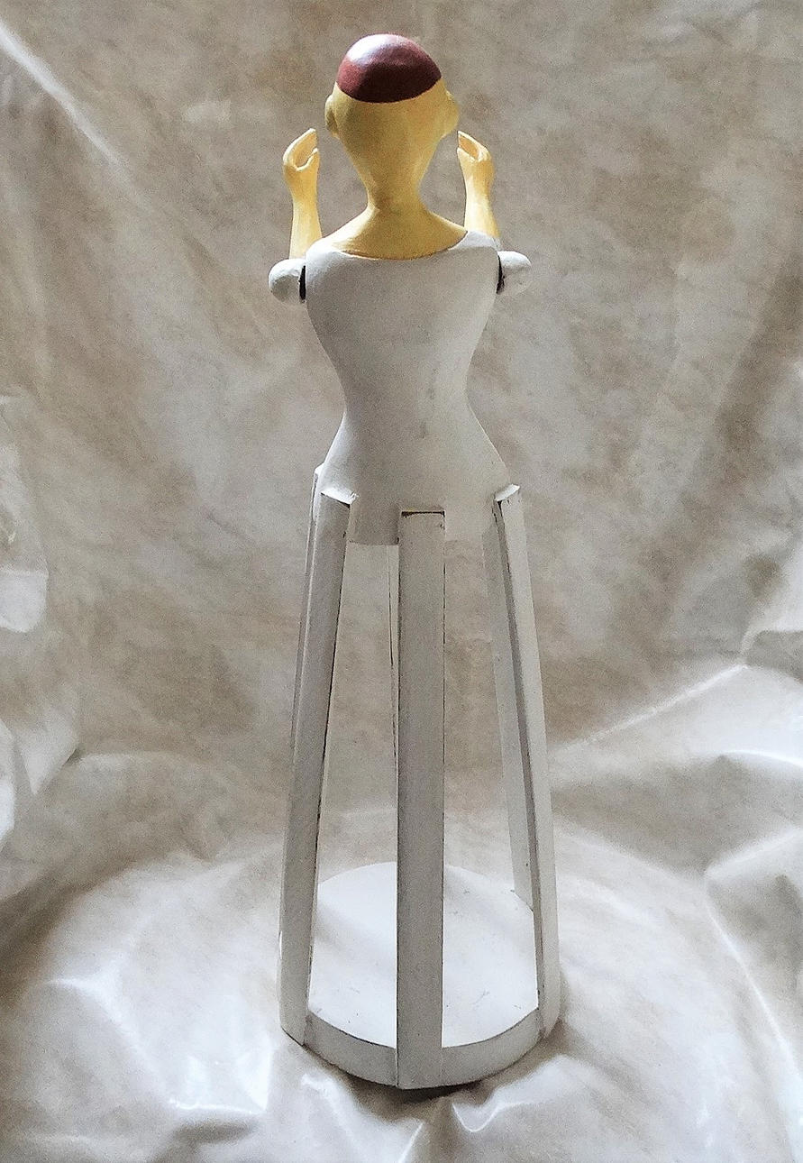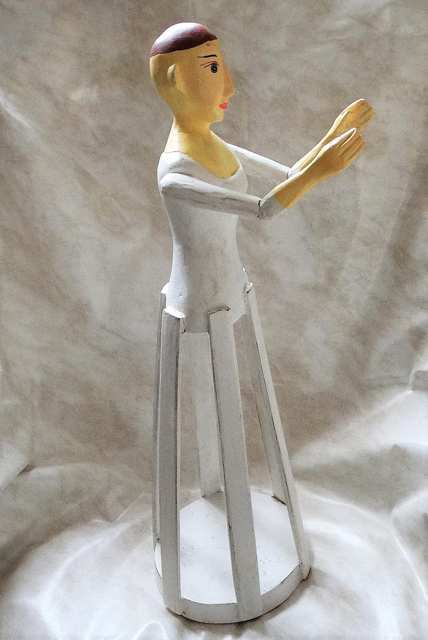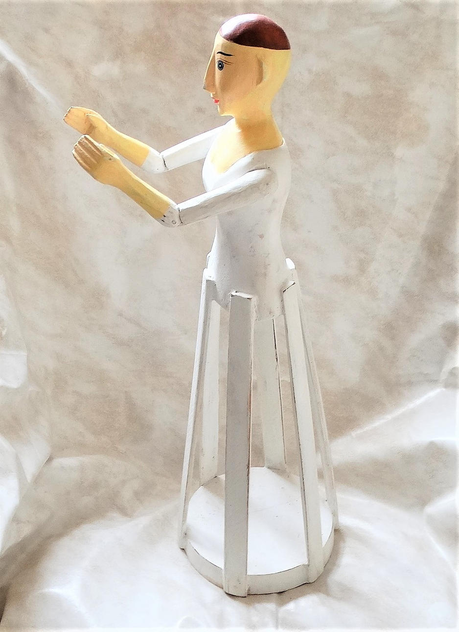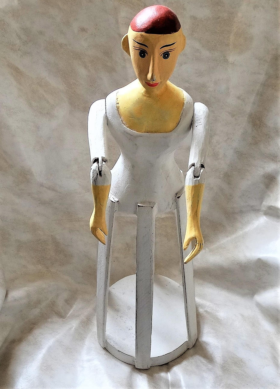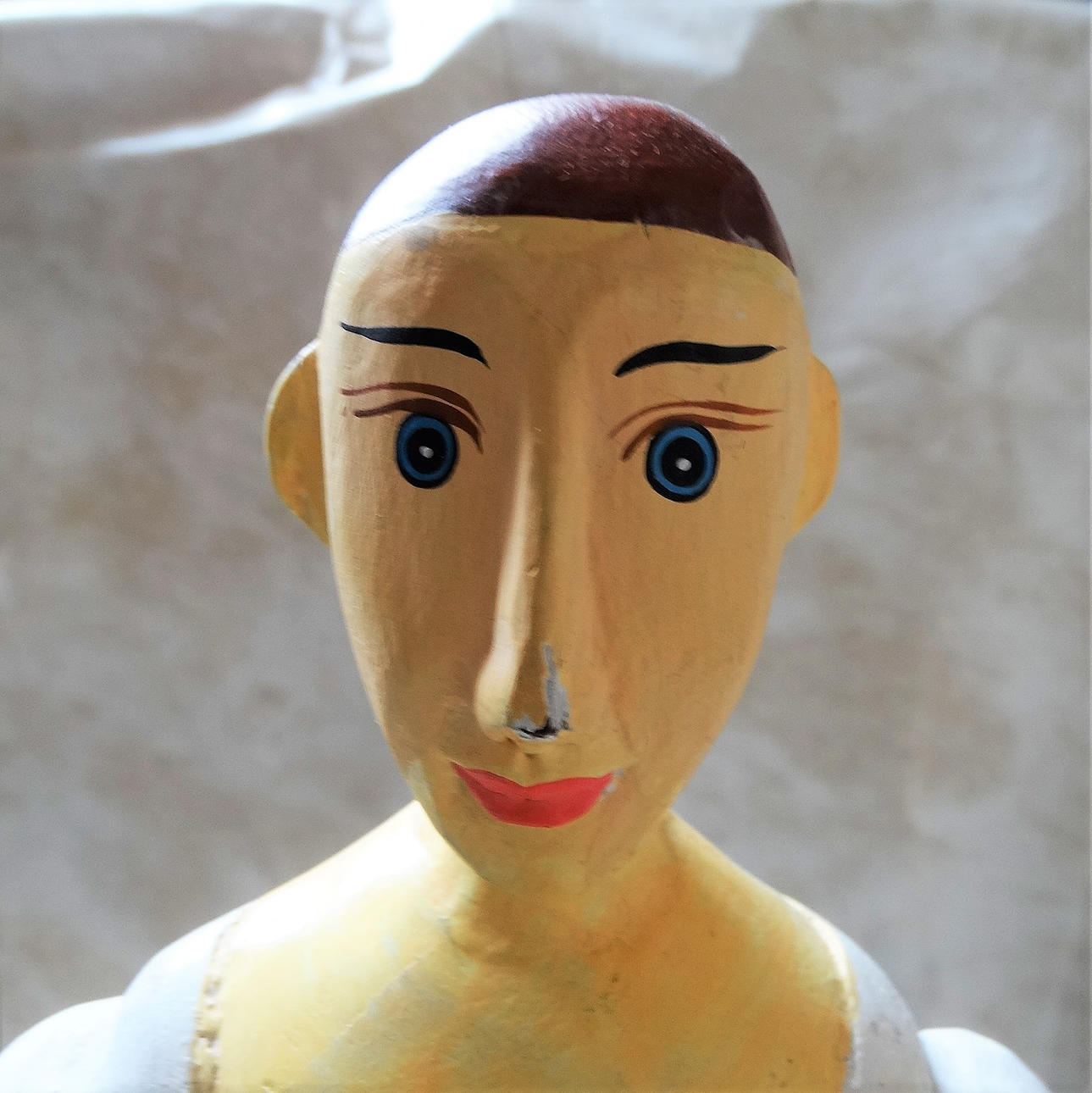 Wood, painted, about 47 x 16 cm, hands can be moved.