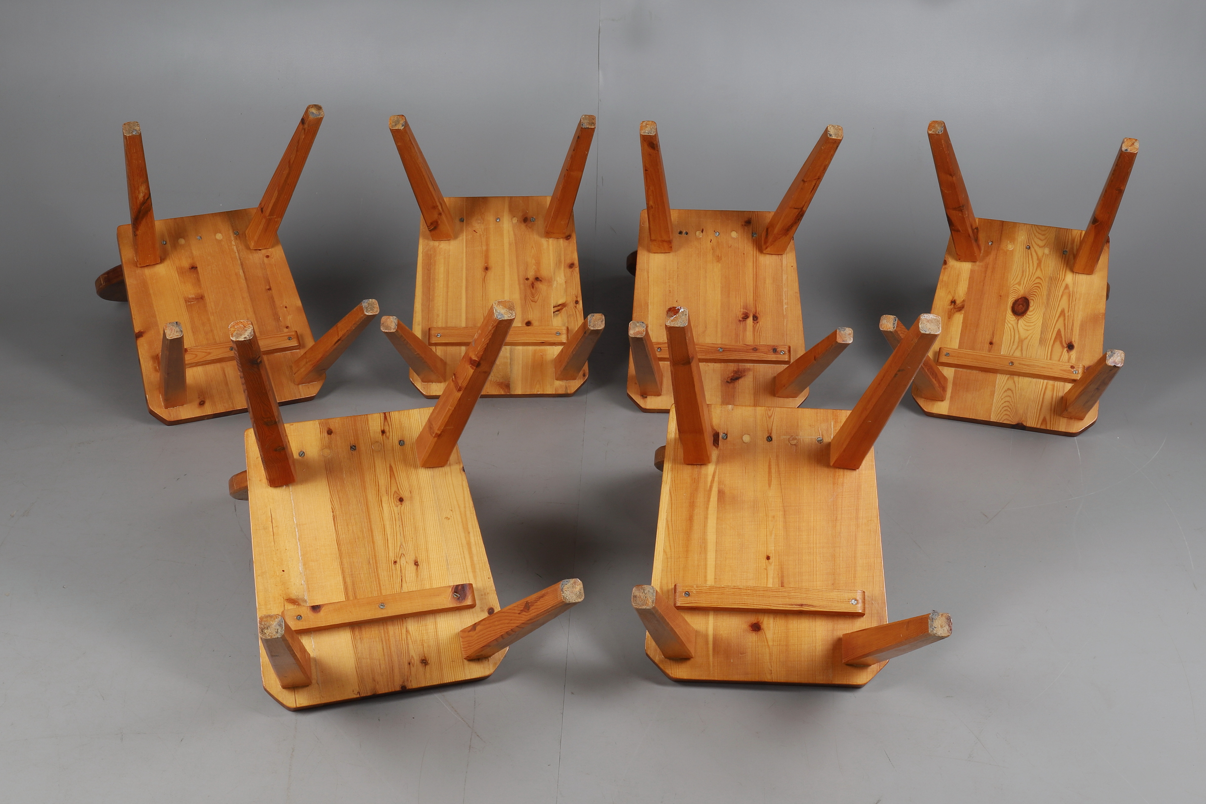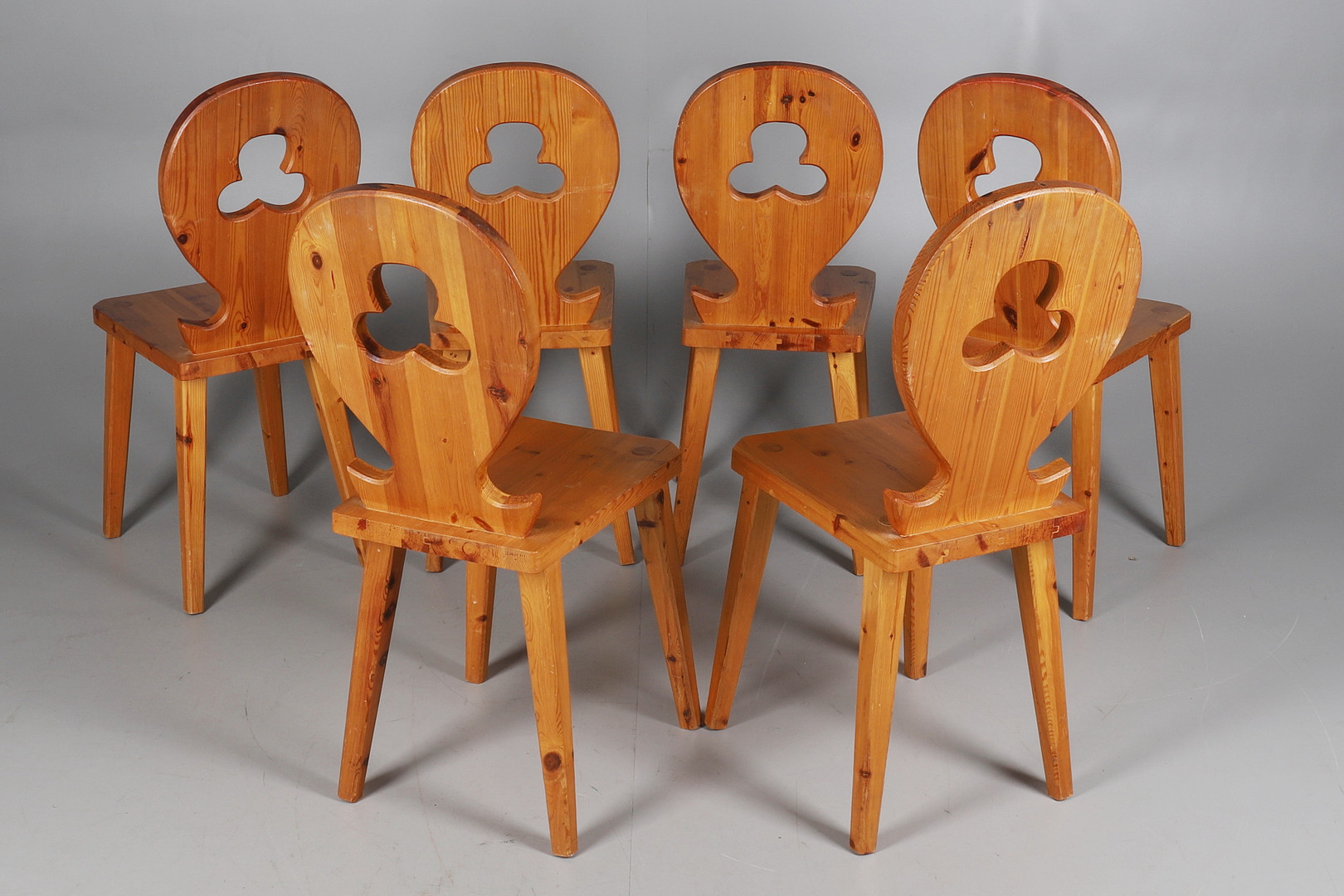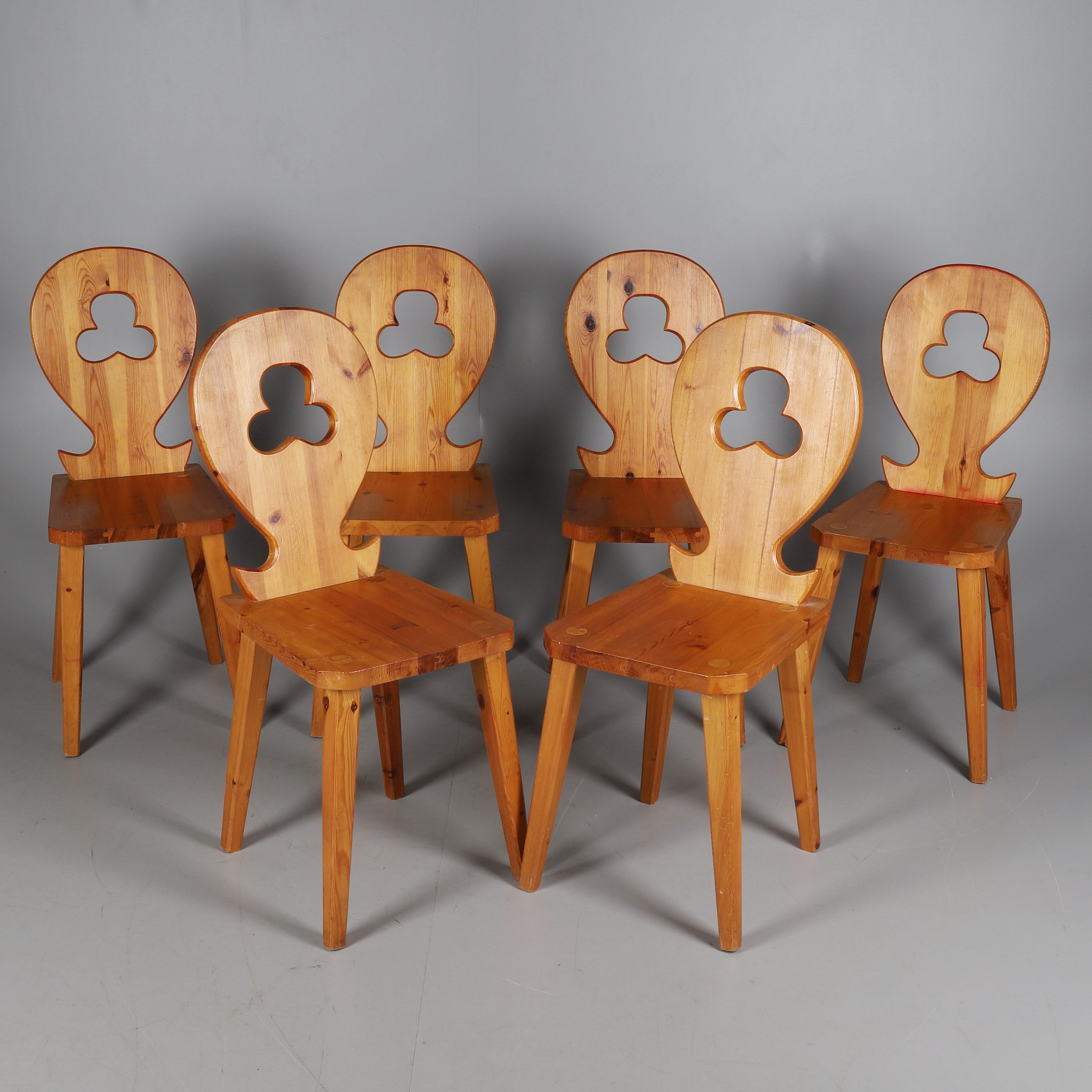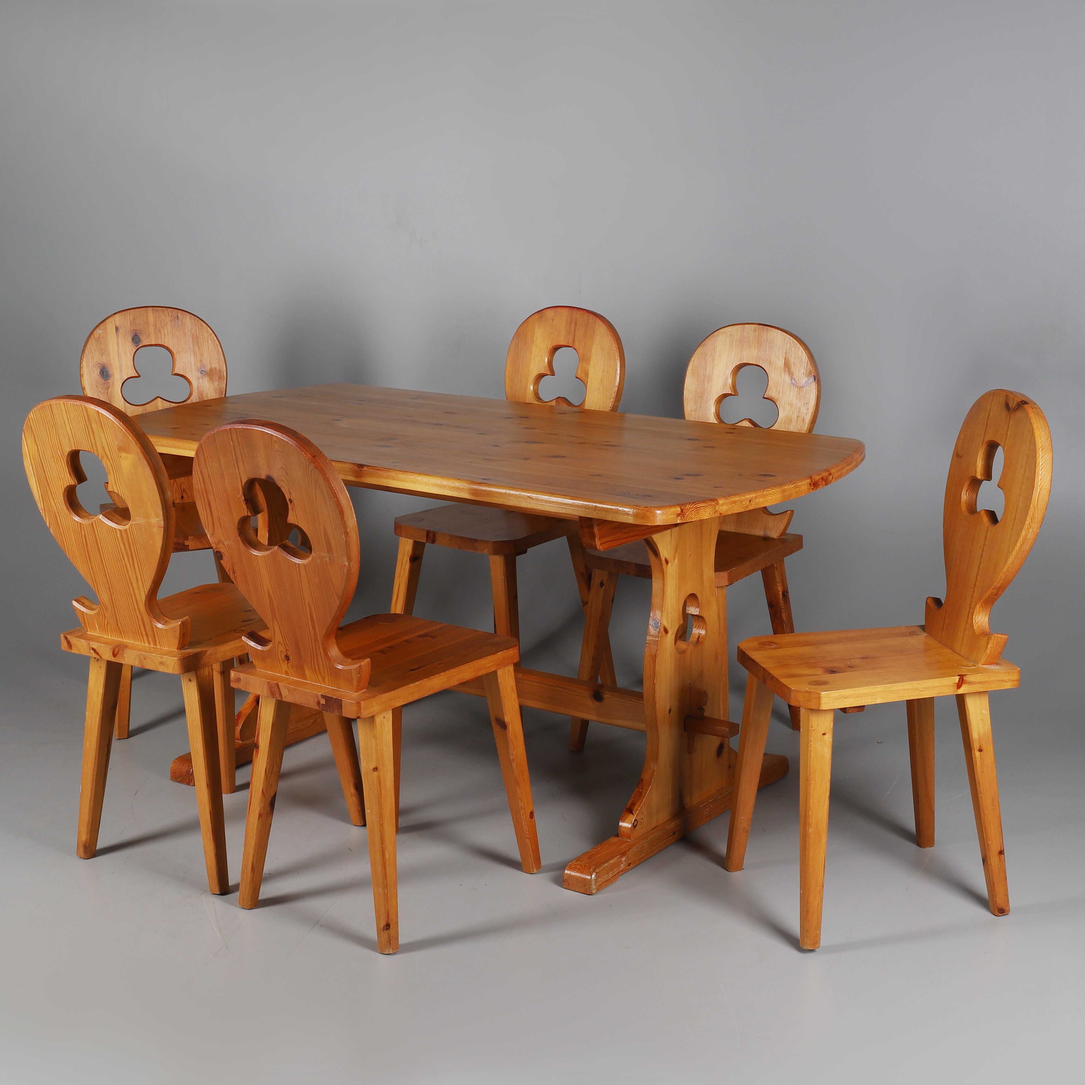 2147612. A TYROLEAN STYLE PINE TABLE AND SIX CHAIRS.