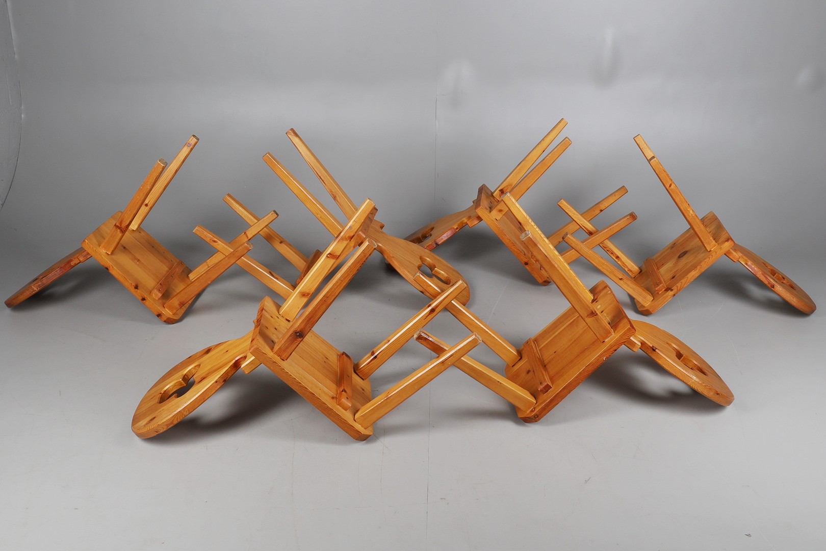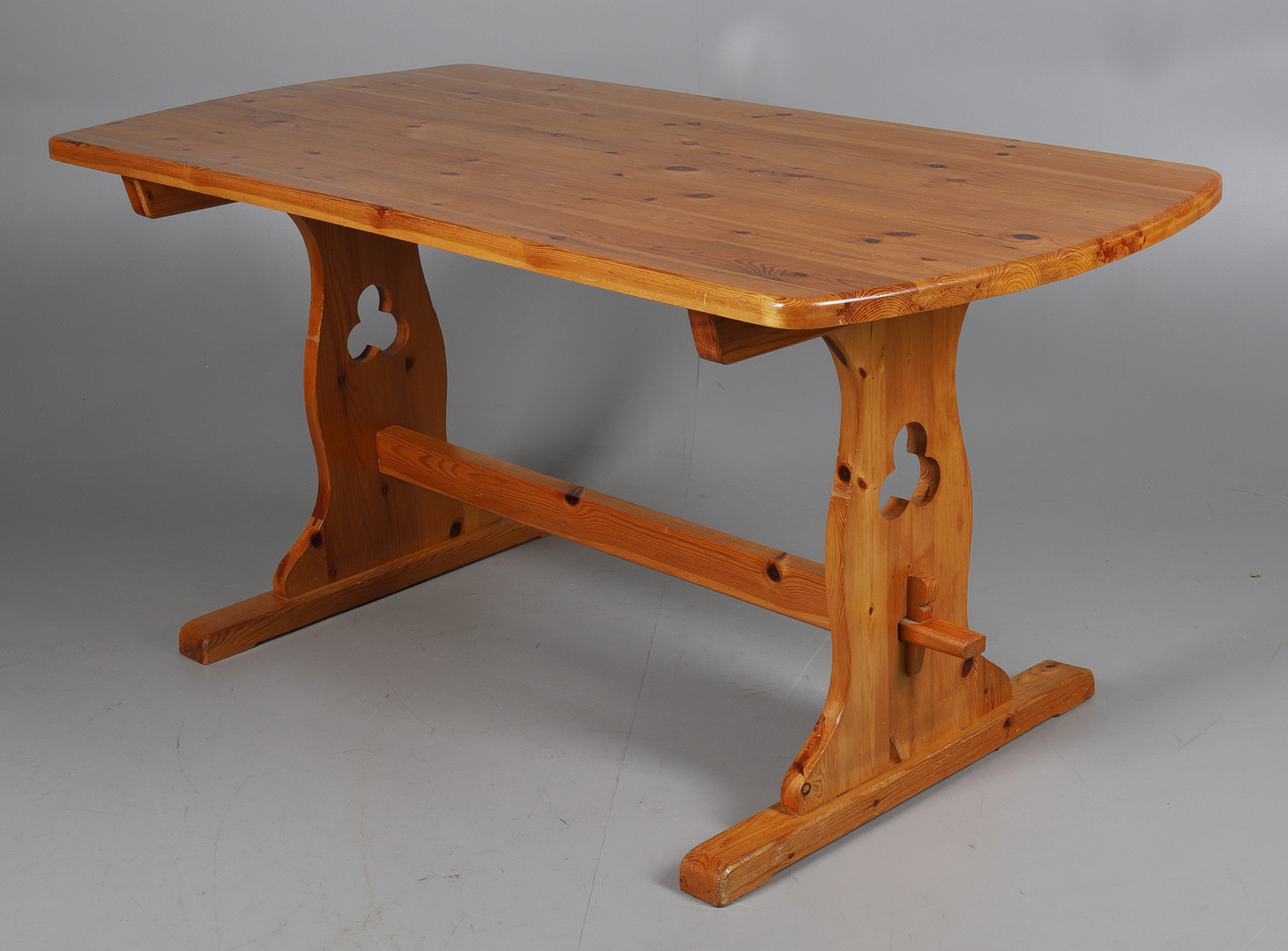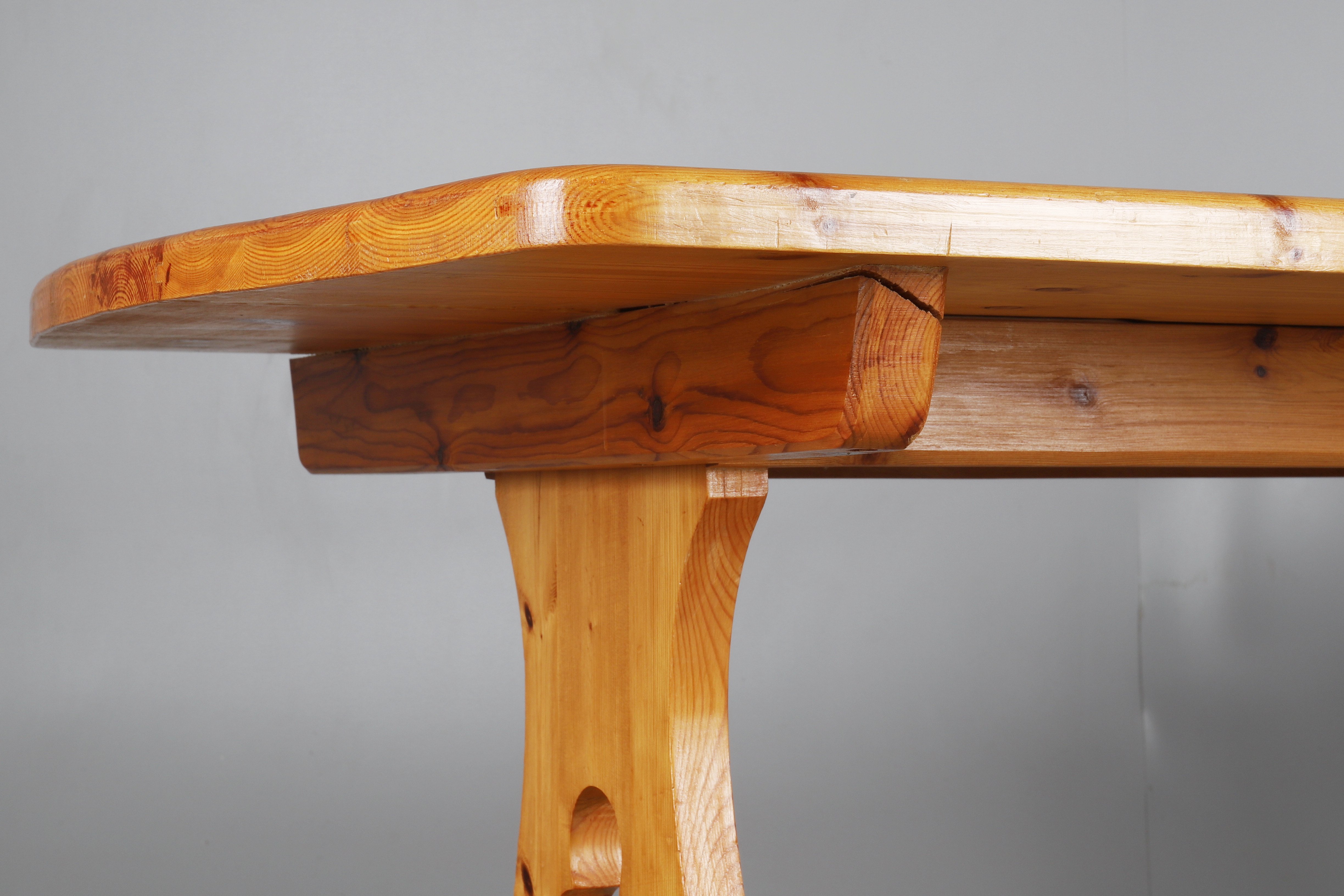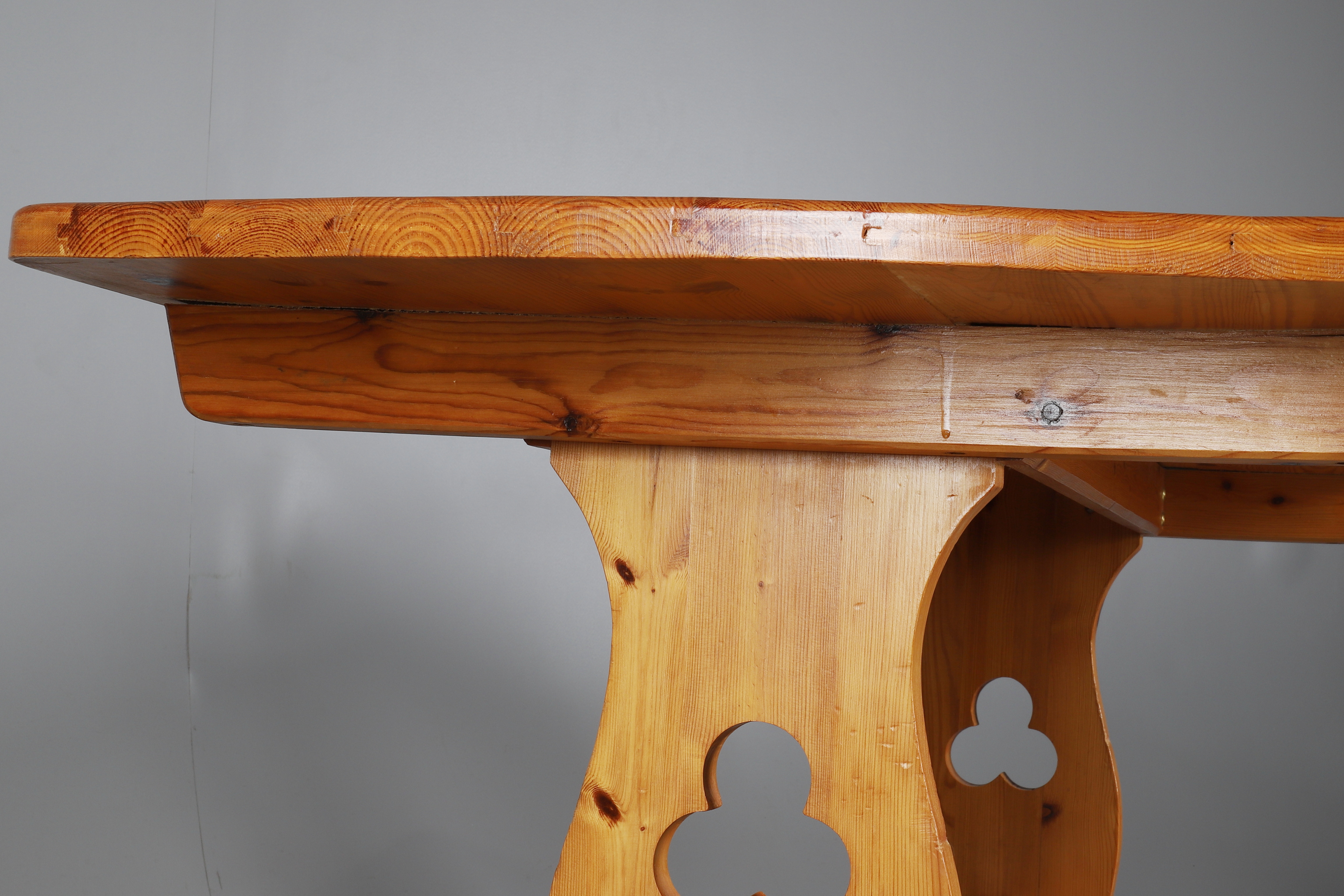 2147612. A TYROLEAN STYLE PINE TABLE AND SIX CHAIRS.