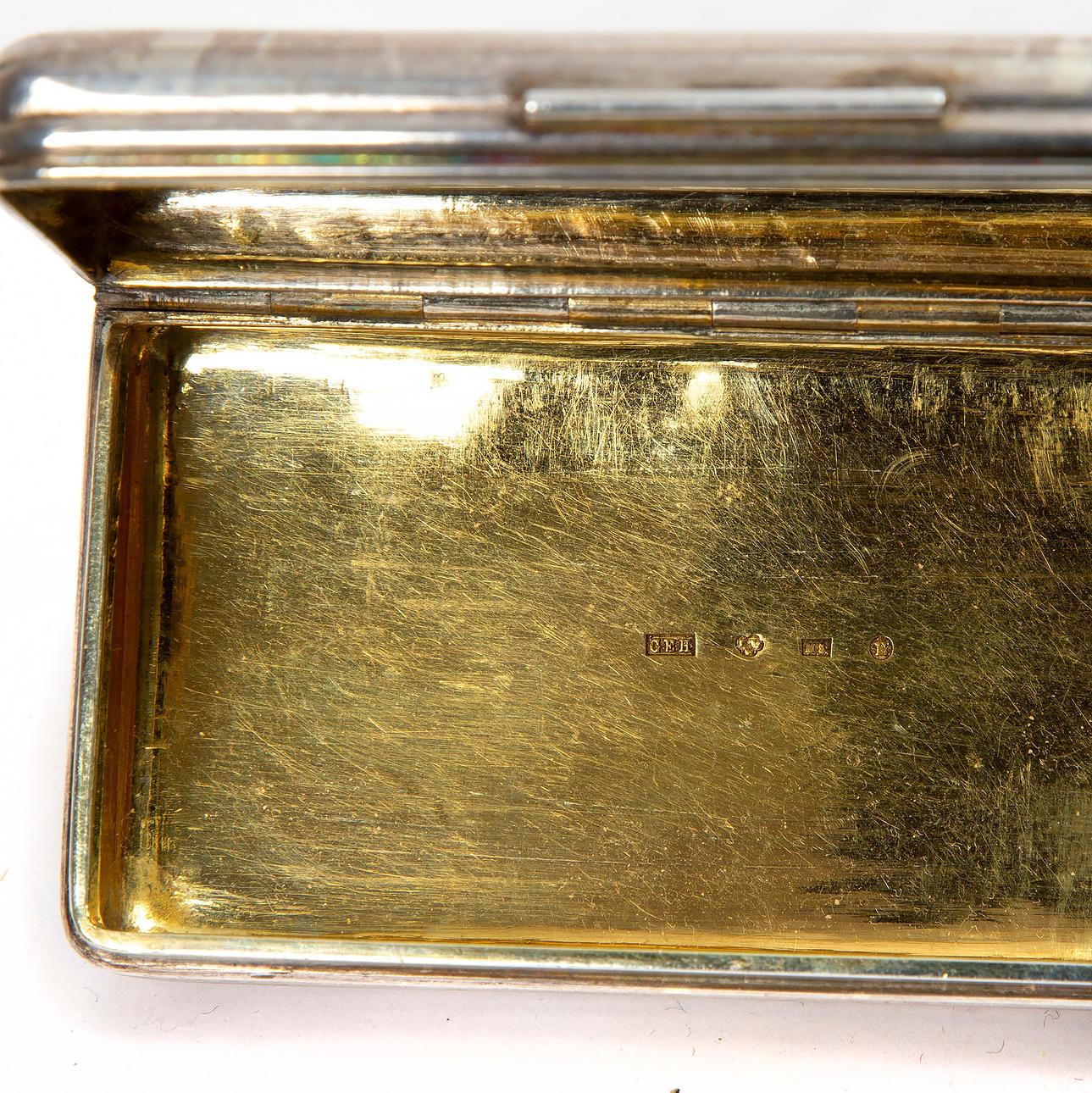 Decor of foliage. Inside gilded. Length approx. 9 cm. Weight approx. 127 g.