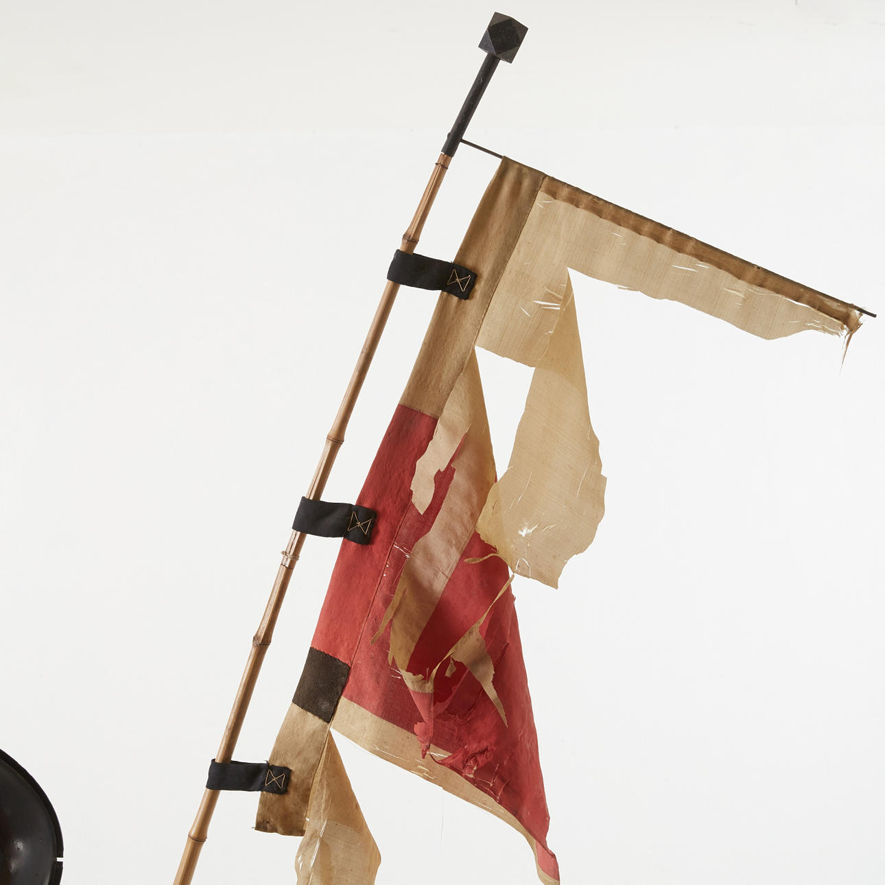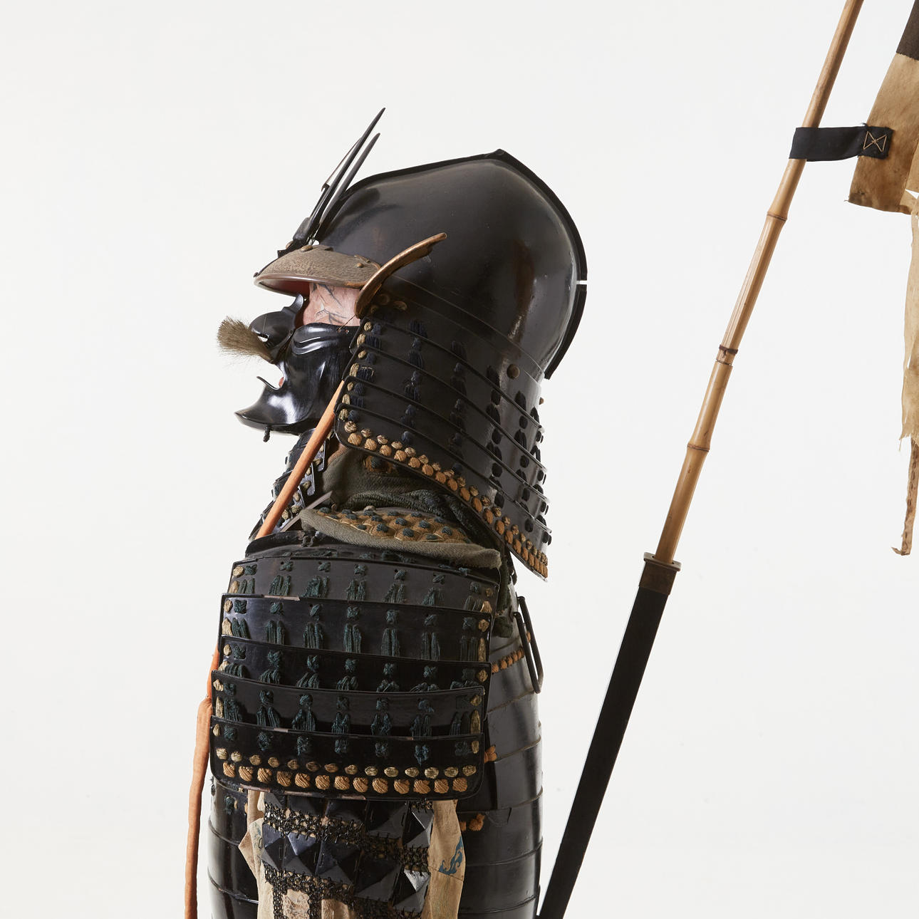 Complete with kabuto, mounted on a doll on a wooden plinth, height approx. 178 cm incl.