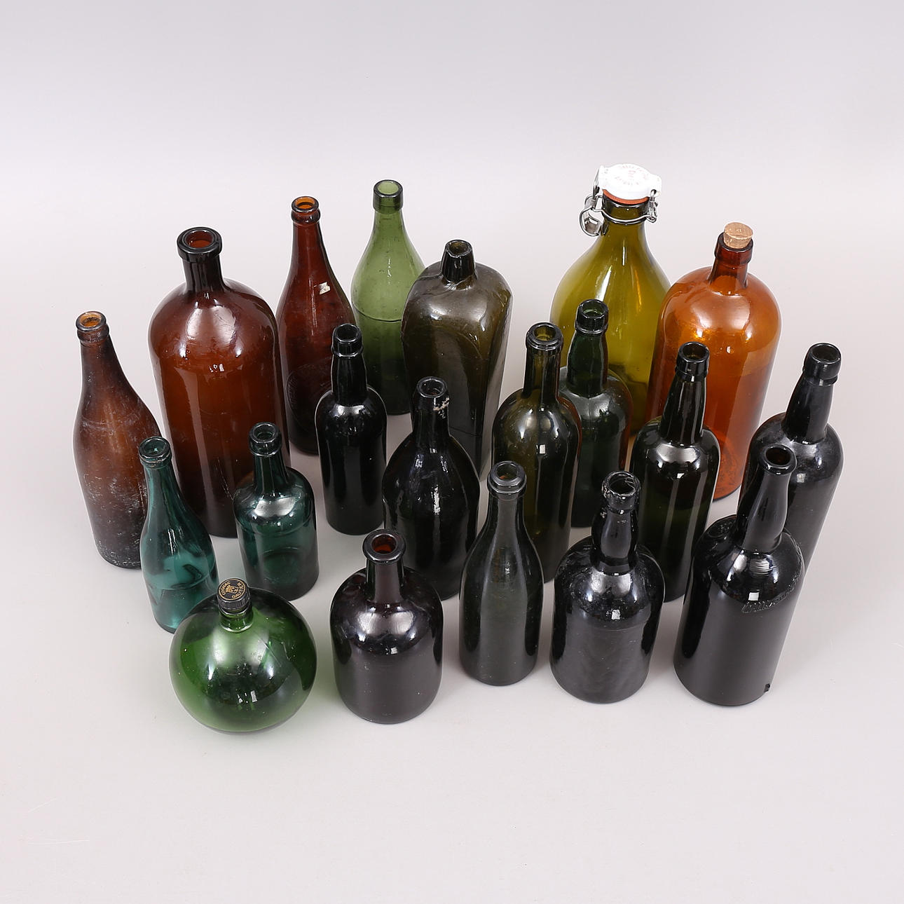 2148792. BOTTLES, 20 pcs., glass, 19th/20th century.