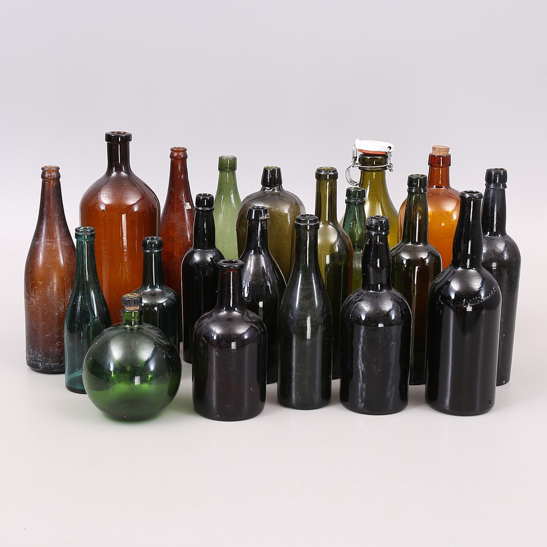 2148792. BOTTLES, 20 pcs., glass, 19th/20th century.