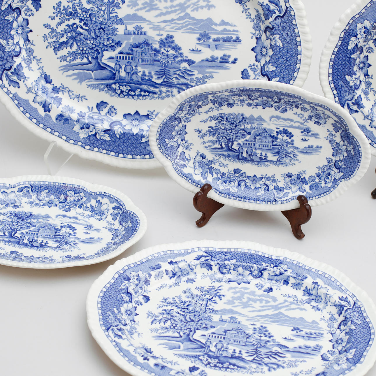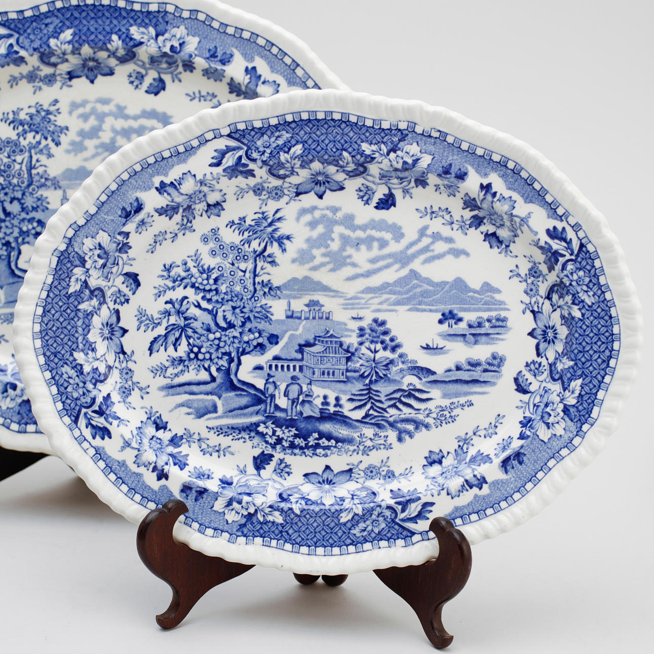 12 Plates, approx. Ø 25.5 cm 12 plates, approx. Ø 20.5 cm 10 plates, approx. Ø 18 cm 1 sauce bowl 6 platters, length approx. 22-36 cm.