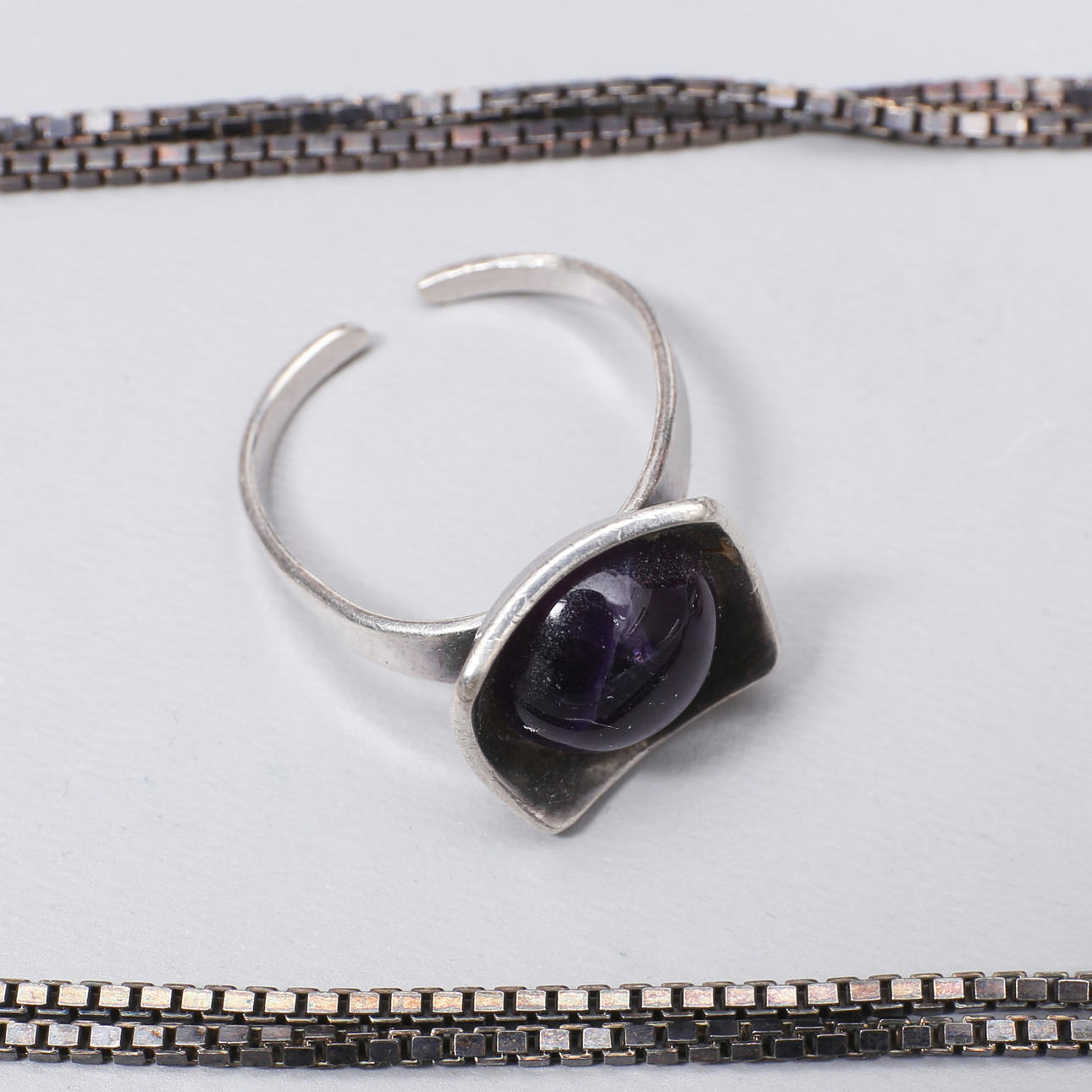 Ring, Alton, silver with purple stone, adjustable.
