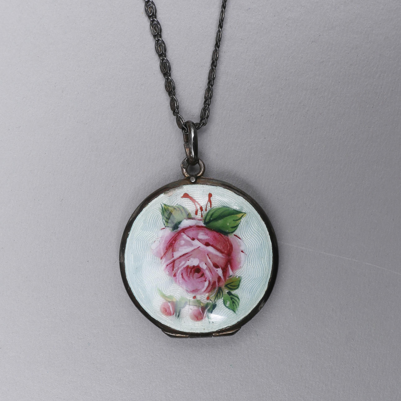 Necklace with photo hide, silver, chain length, approx. 42 cm, photo hide, diameter, approx. 3 cm.