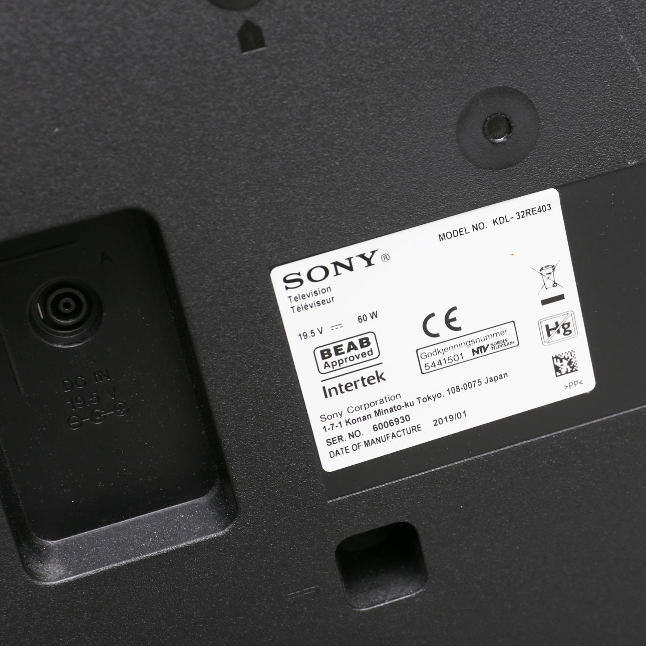 TV, Sony, Model No. KDL-32RE403.