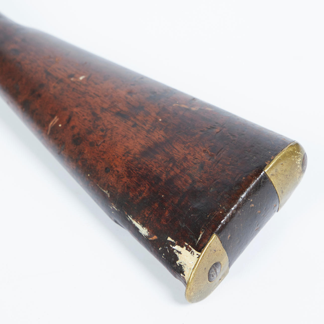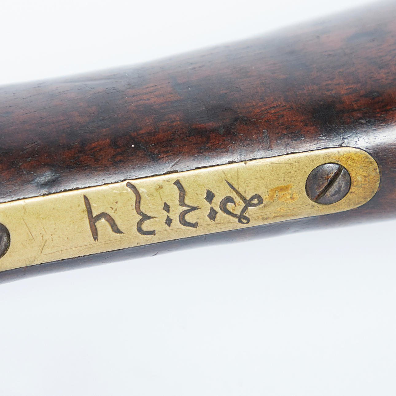 Age-appropriate signs of wear and abrasion, scratches and bumps in the wood, missing piston, as well as traces of rust and strong abrasion of the engraving on the lock plate.