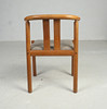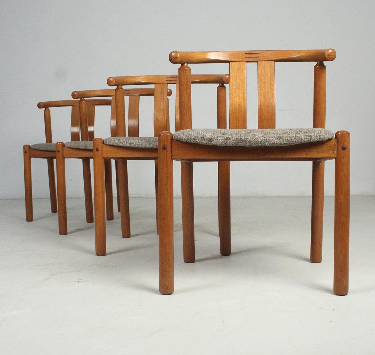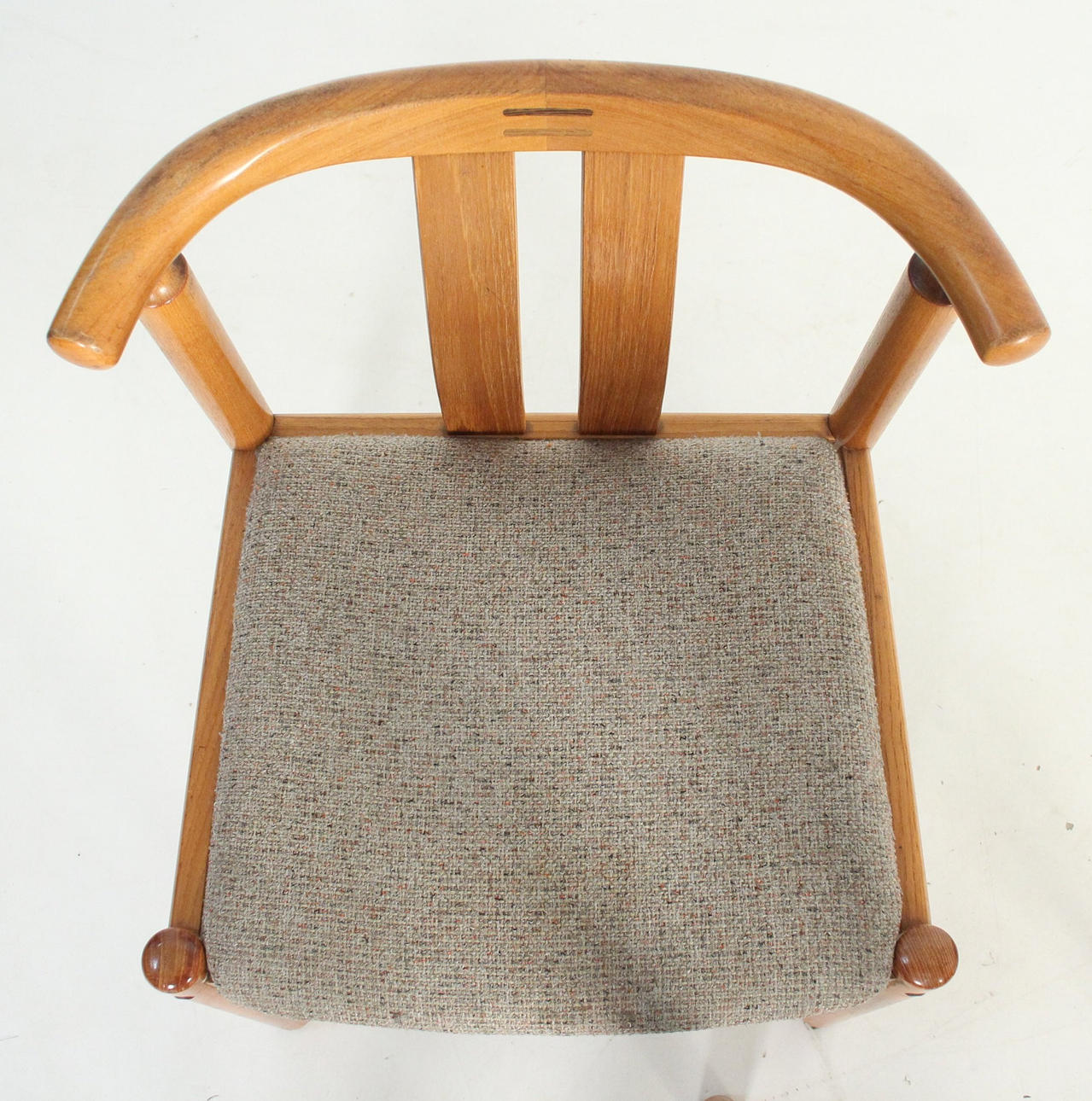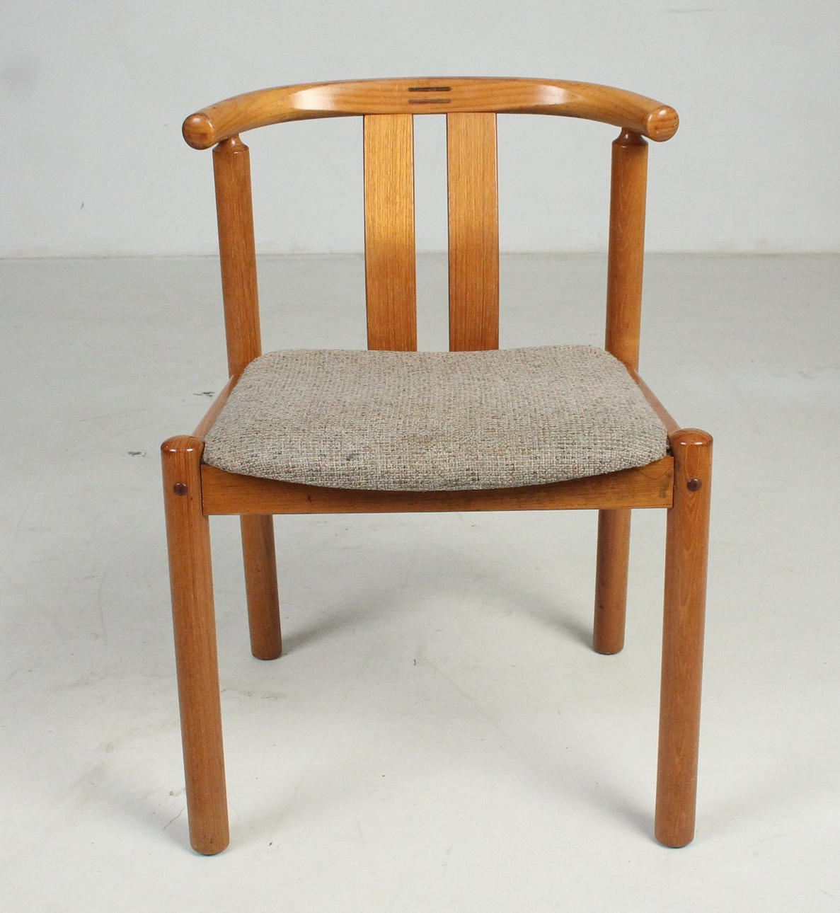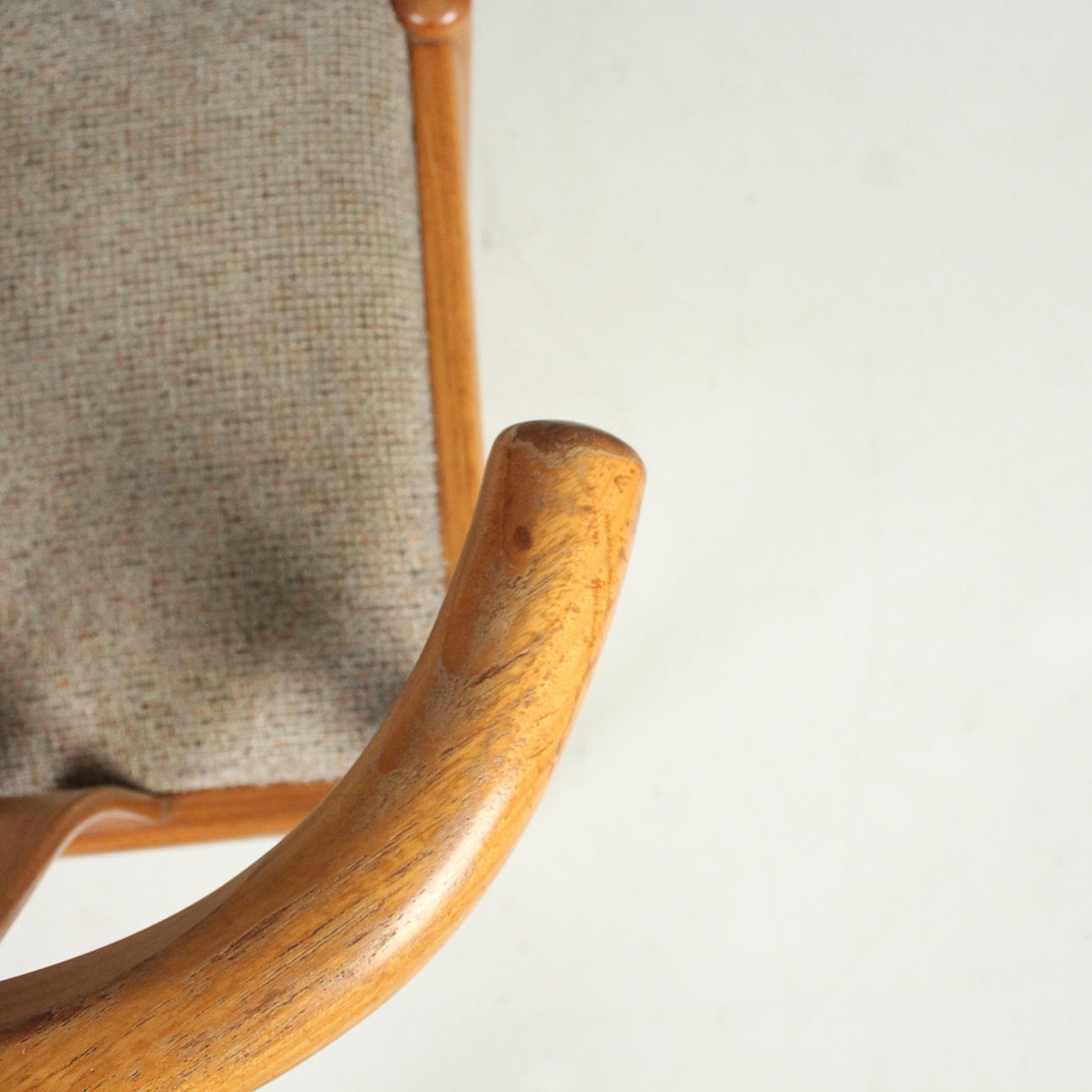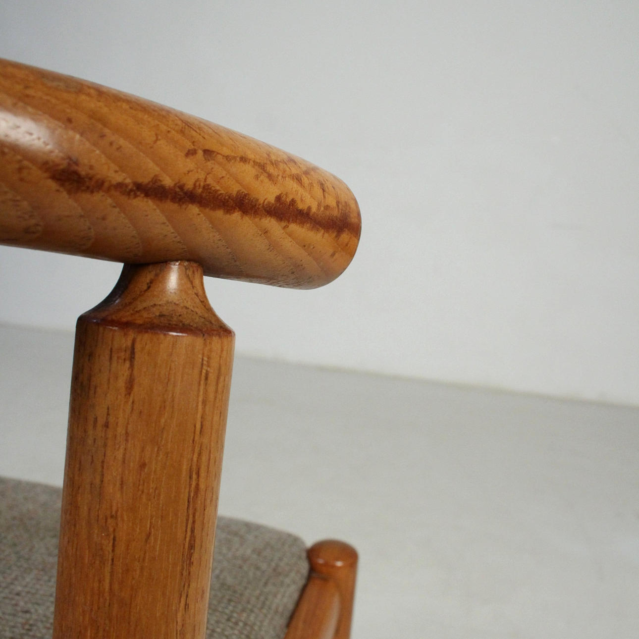 Material: teak with dark inlaid wood, foam, structured flat weave Dimensions: H: 77 cm, W: 53 cm, D: 54 cm.