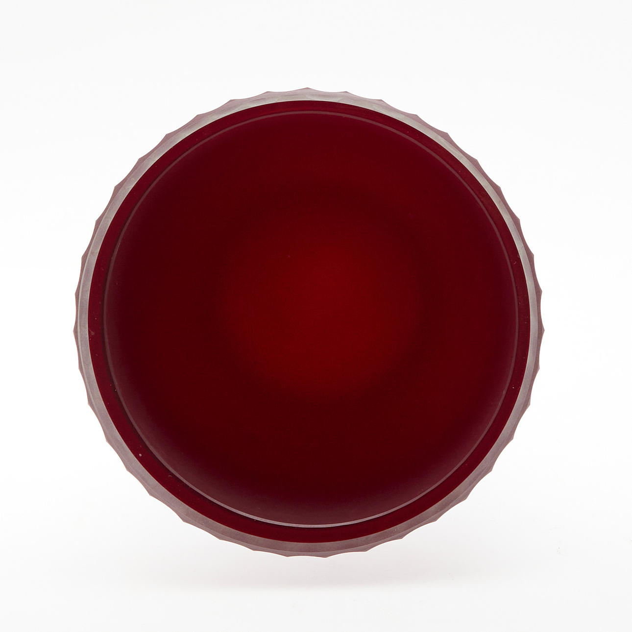 Gunther Lambert (1928-2015), vase, glass. Vase made of thick-walled, oxide-red colored glass with a slightly conical body and faceted walls, signed on the underside of the glass, H.21.5cm, D.15.5cm.