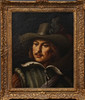 Signed. Partial copy of Rembrandt's original "The Night Watch" preserved in the Rijksmuseum in Amsterdam.