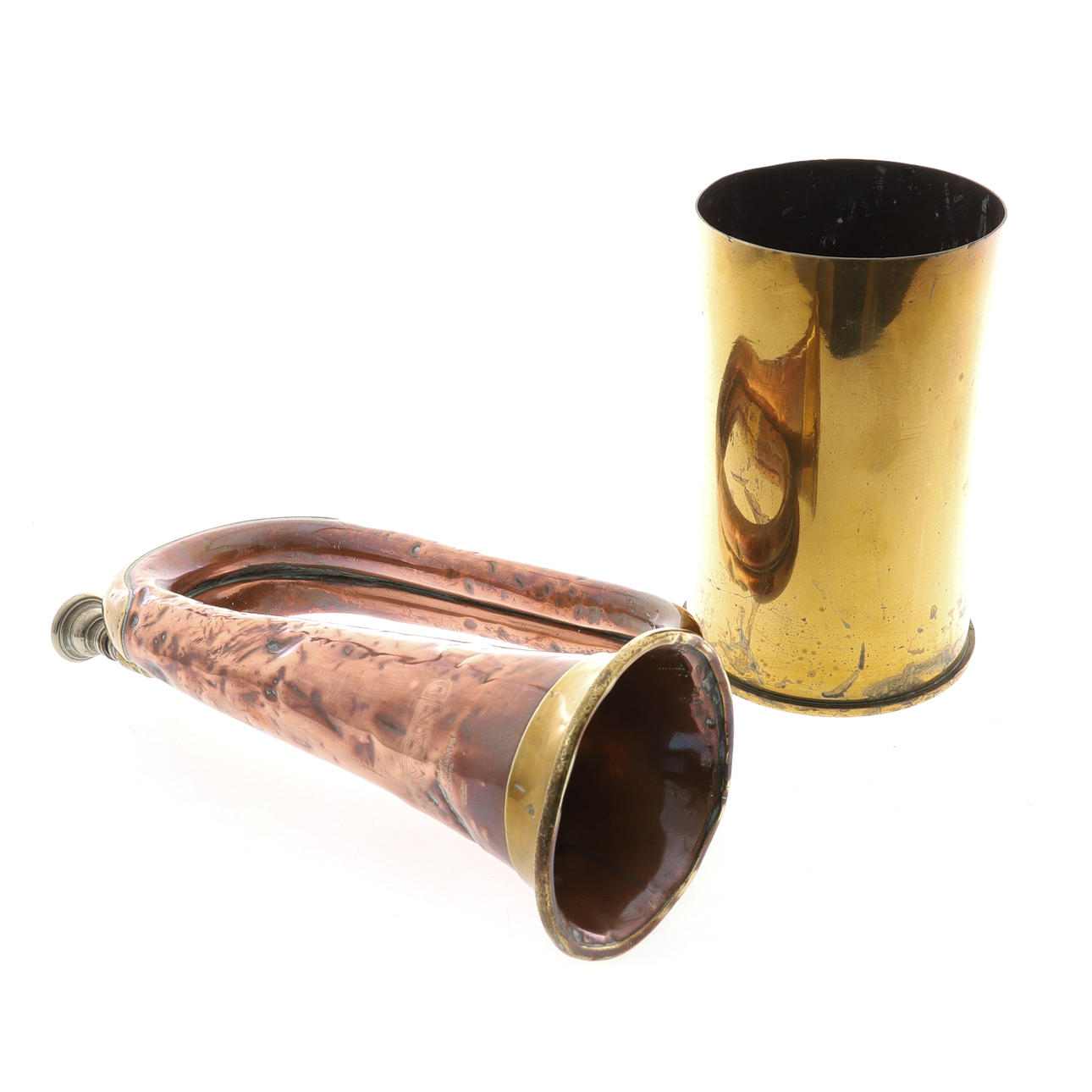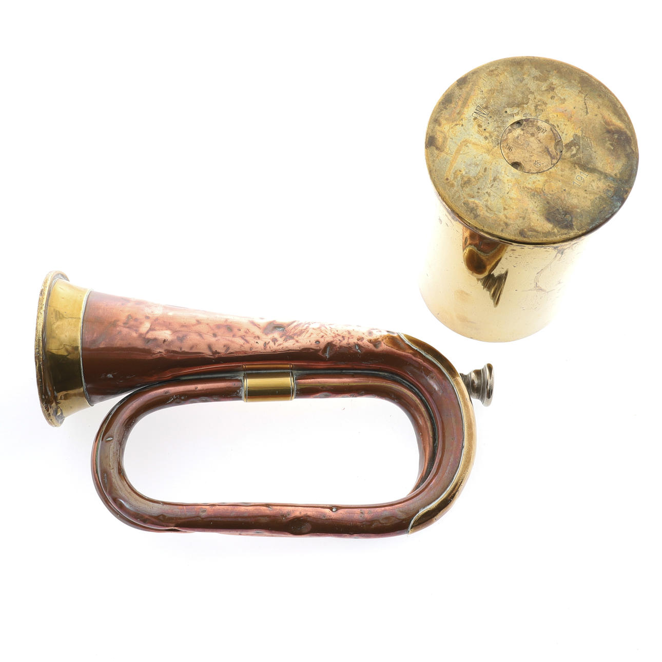 17.5cm high, and a Boosey & Hawkes Command copper and brass bugle, 29cm long (2).