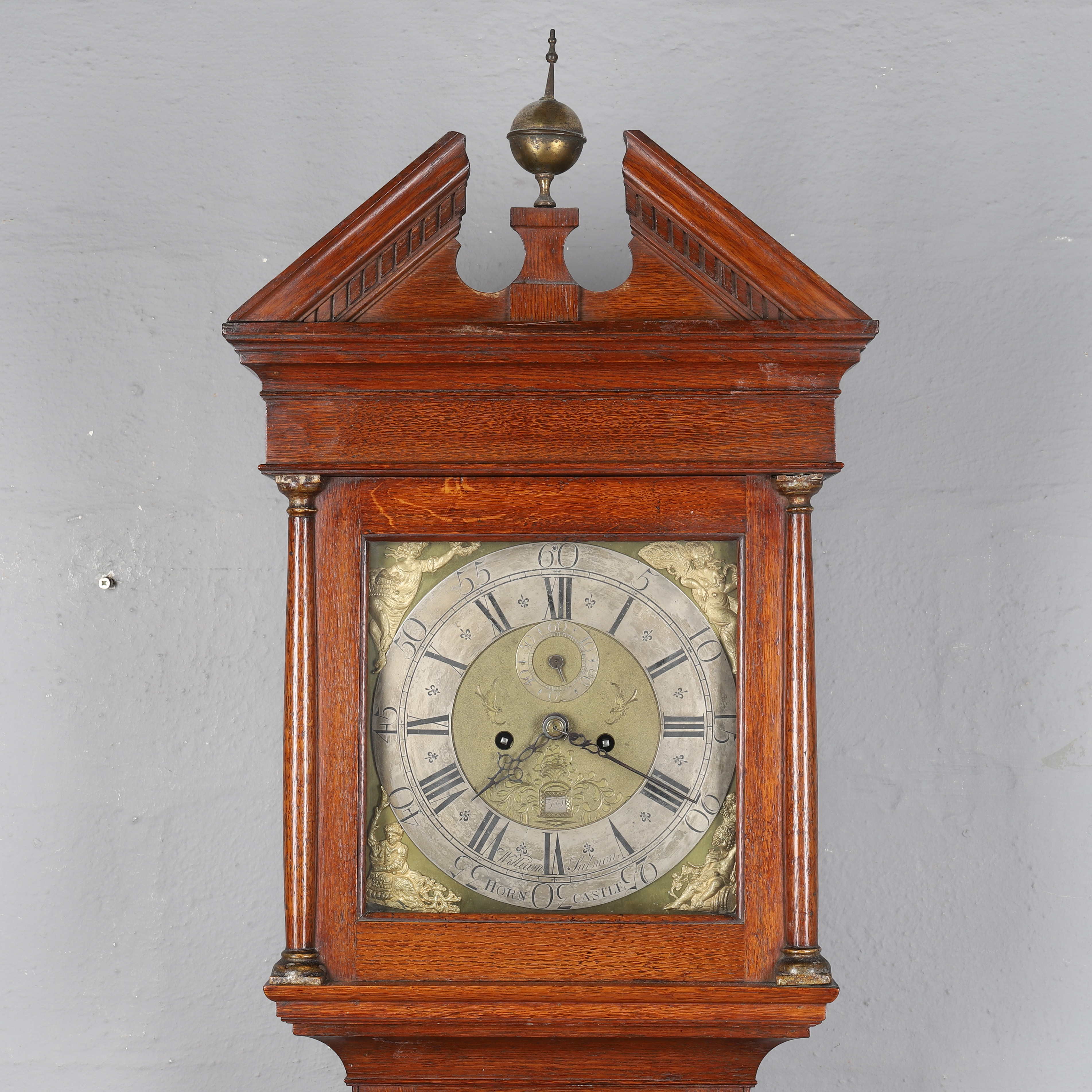 2170076. WILLIAM SALMON, HORNCASTLE. AN EIGHTEENTH CENTURY OAK LONG CASE CLOCK.