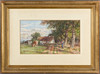 village landscape. Gouache on paper. Signed lower left. dimensions approx. 15x25cm. Framed (29x40cm).