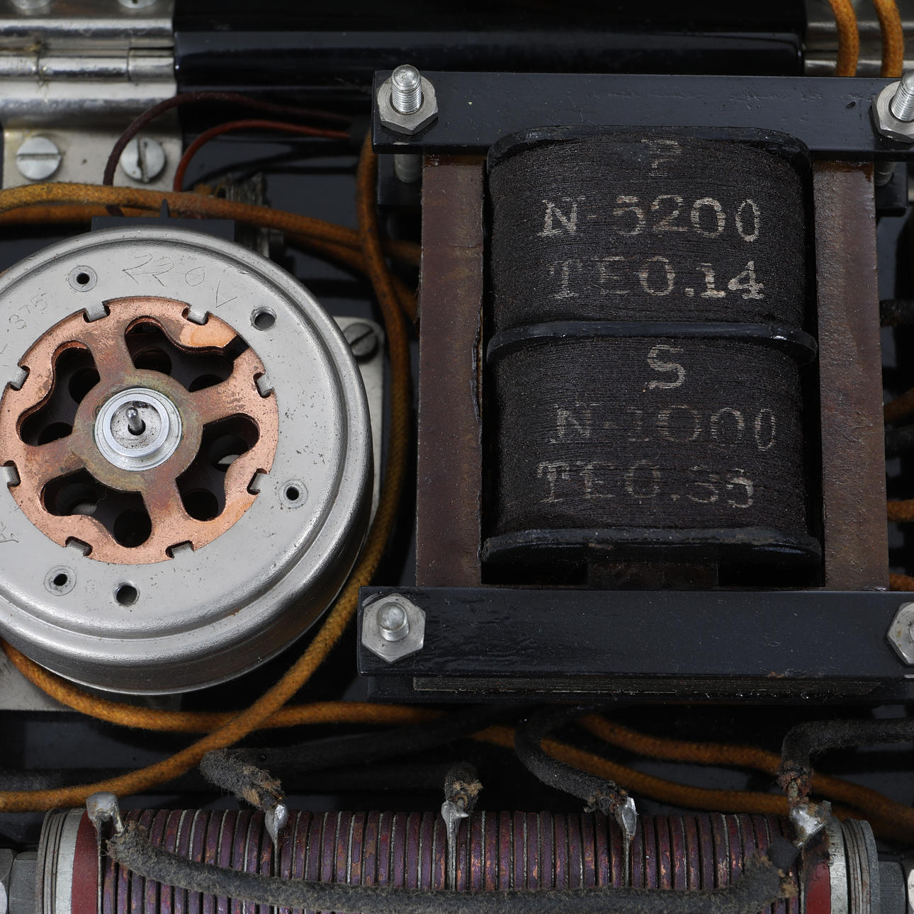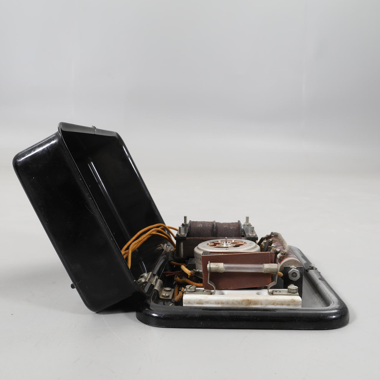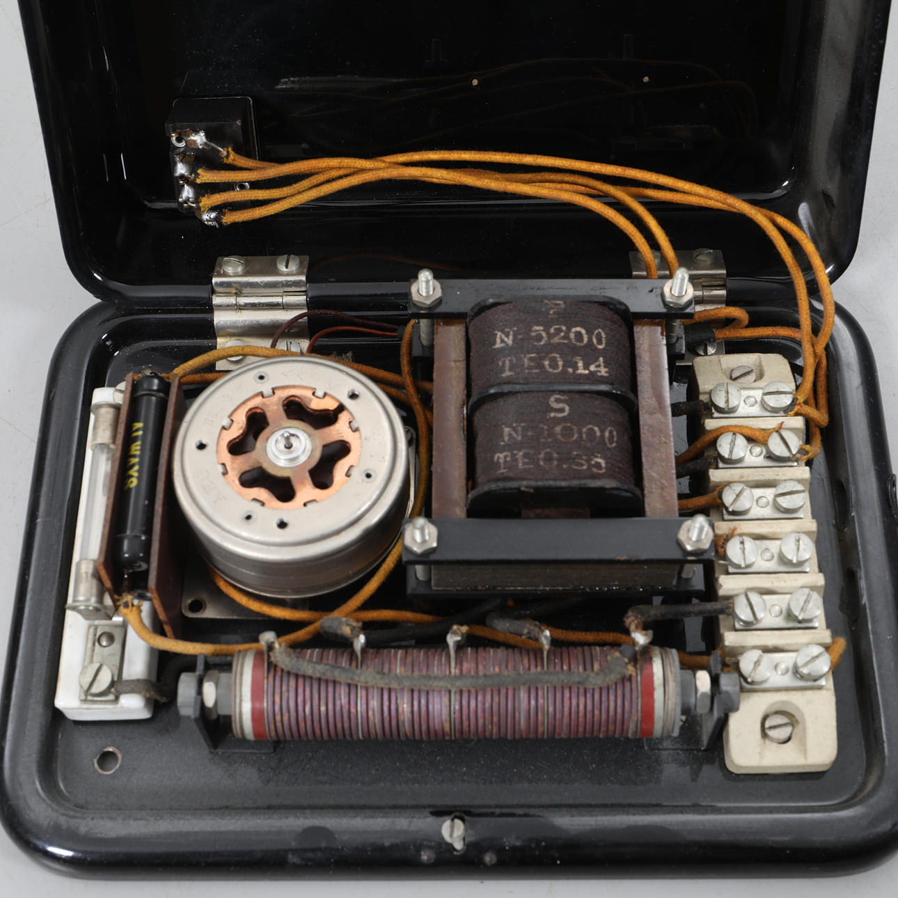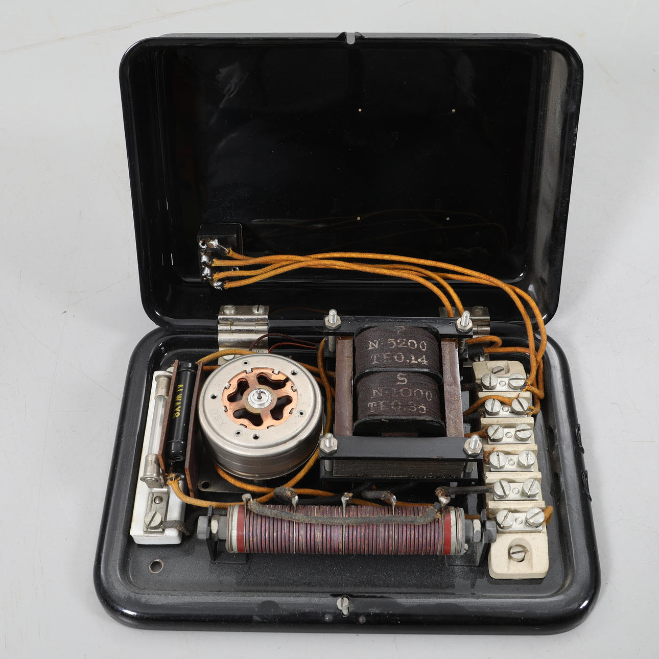 Desk phone Manufacturer LM Ericsson Handset from K. Telegrafverket's workshop, Nynäshamn Height approx. 26 cm Transformer/rectifier Manufacturer LM Ericsson, Stockholm.