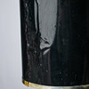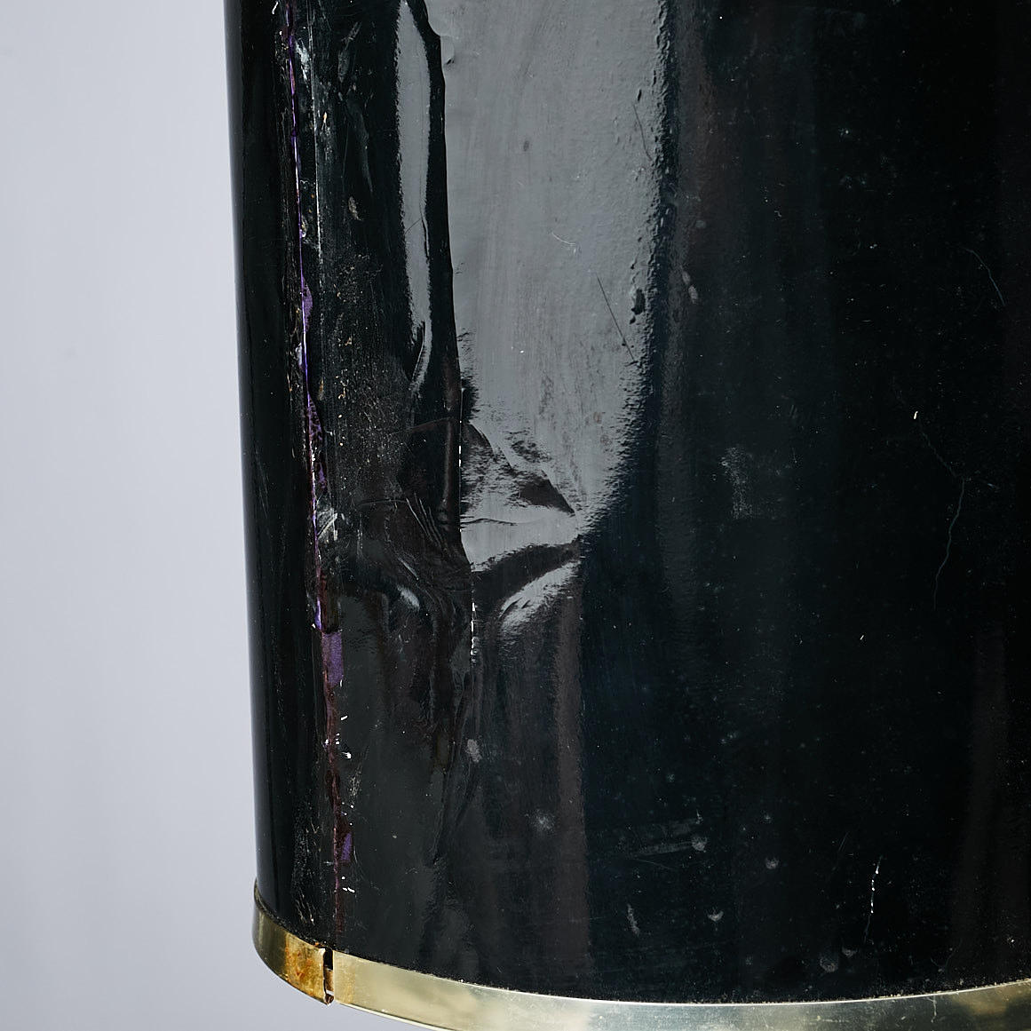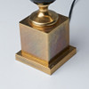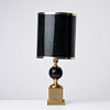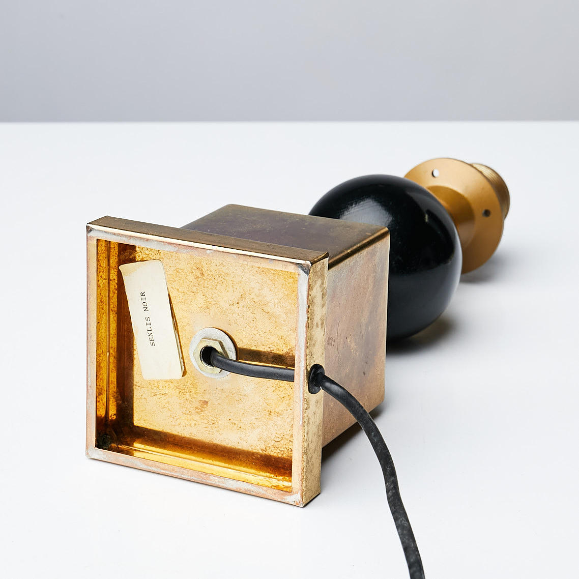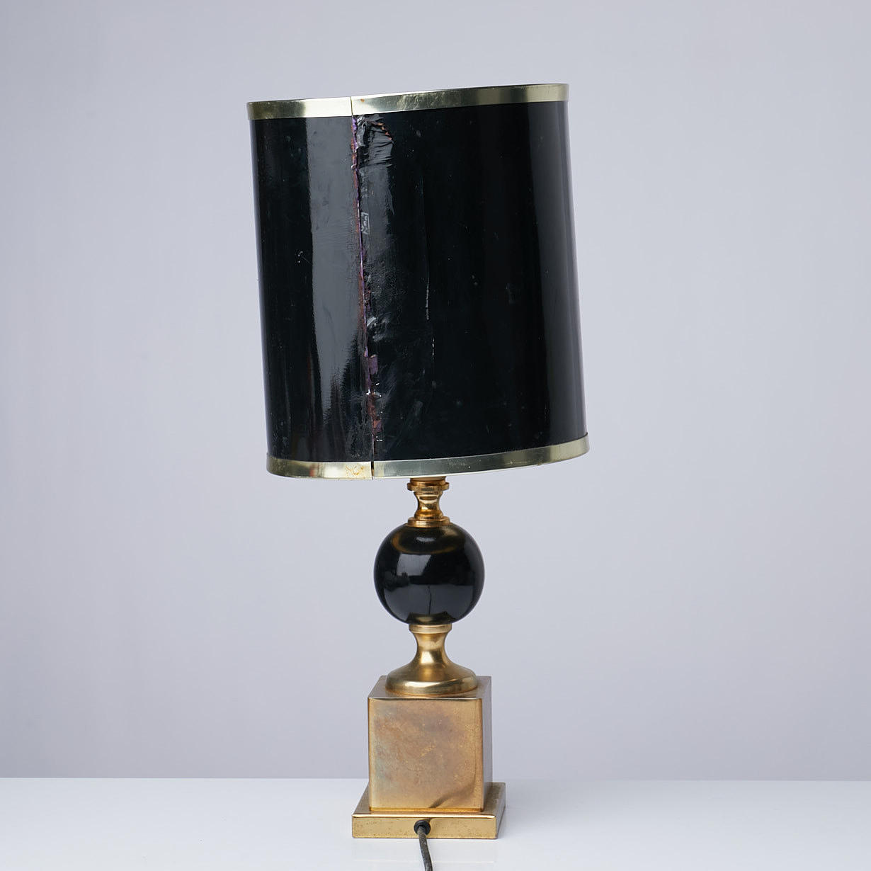 2177392. TABLE LAMP, brass, rectangular base, central stem decorated with blackened wooden globes, second half of the 20th century.