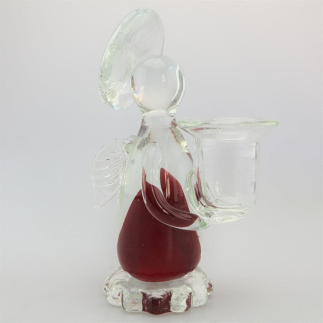 Murano glass angel candlestick, made in Italy, with red body, height: 15.5 cm.