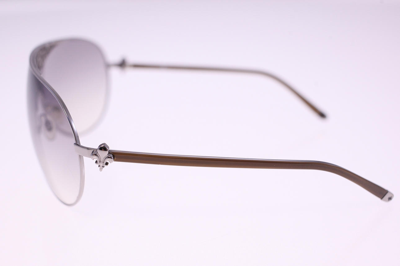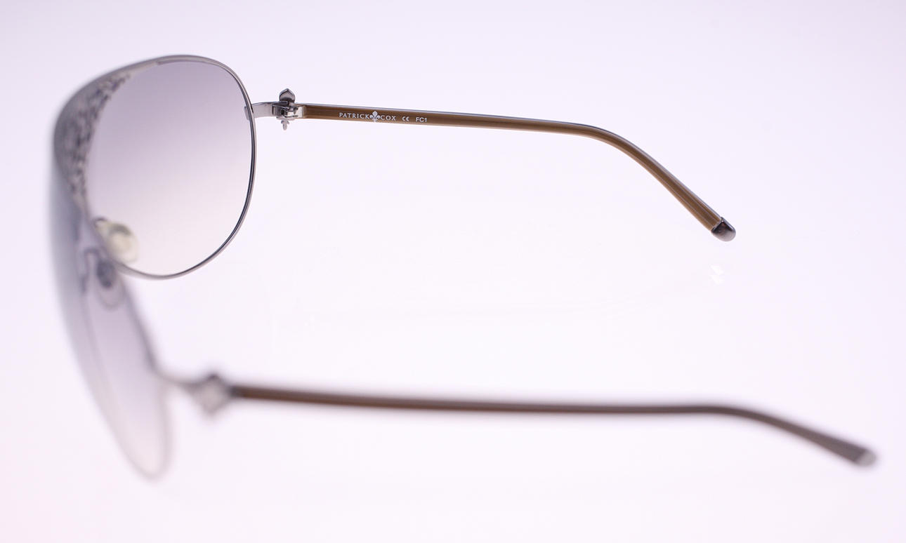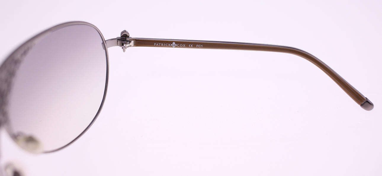 Brown plastic temples, metal frames and dark gray lenses Patrick Cox FC1.