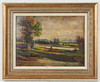 J. Hartung, paintings, seascape, oil on panel. Representation of a summer exterior with a body of water in the middle ground and a mountain range in the background, signed lower left, 16.5x22cm (25.5x31.5cm).