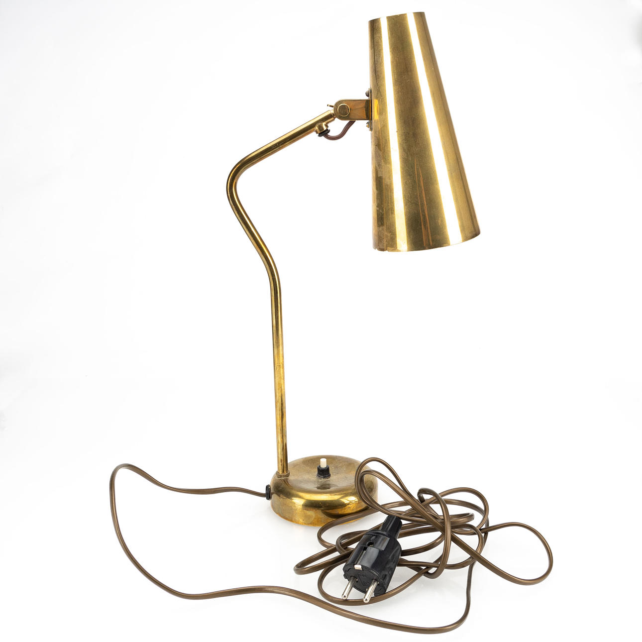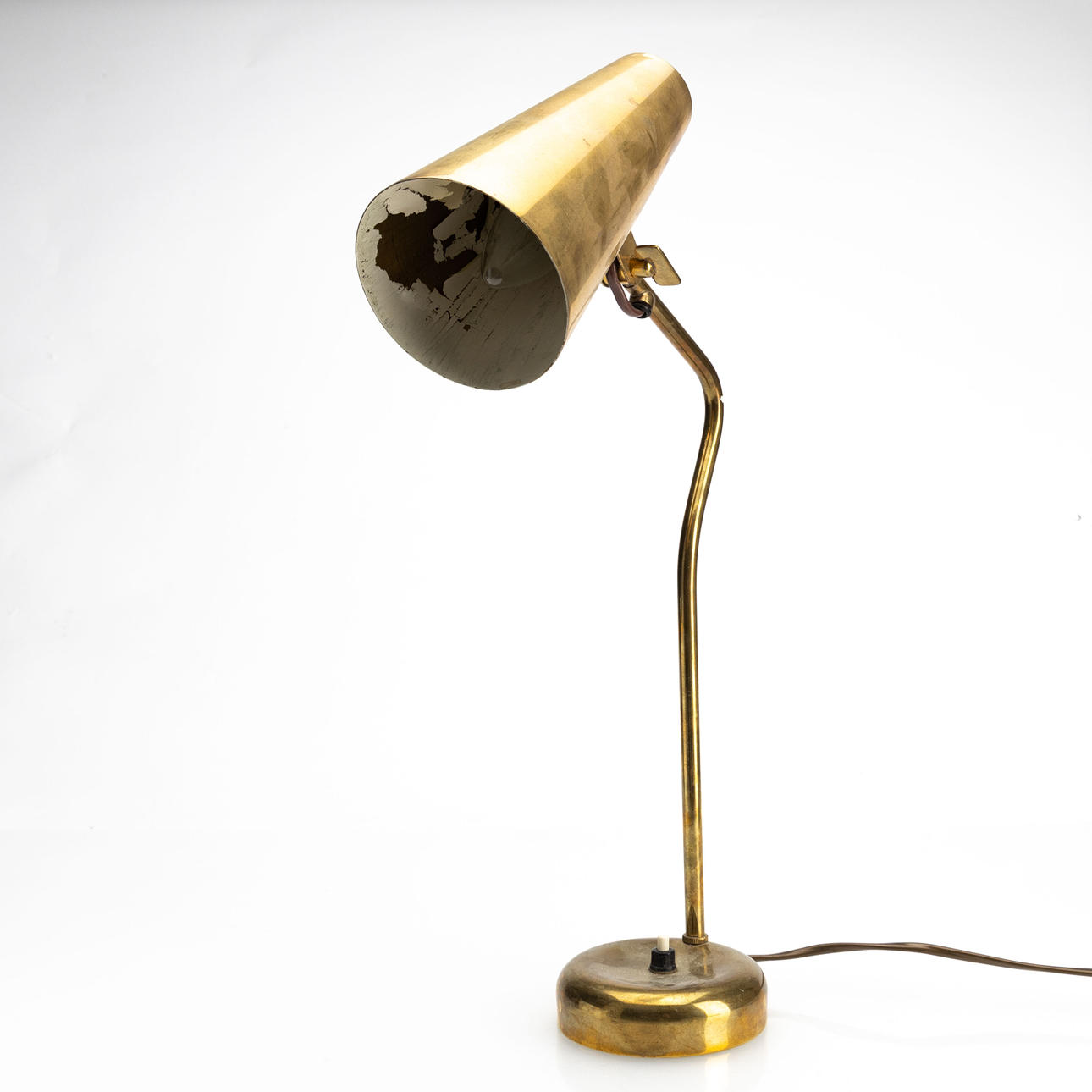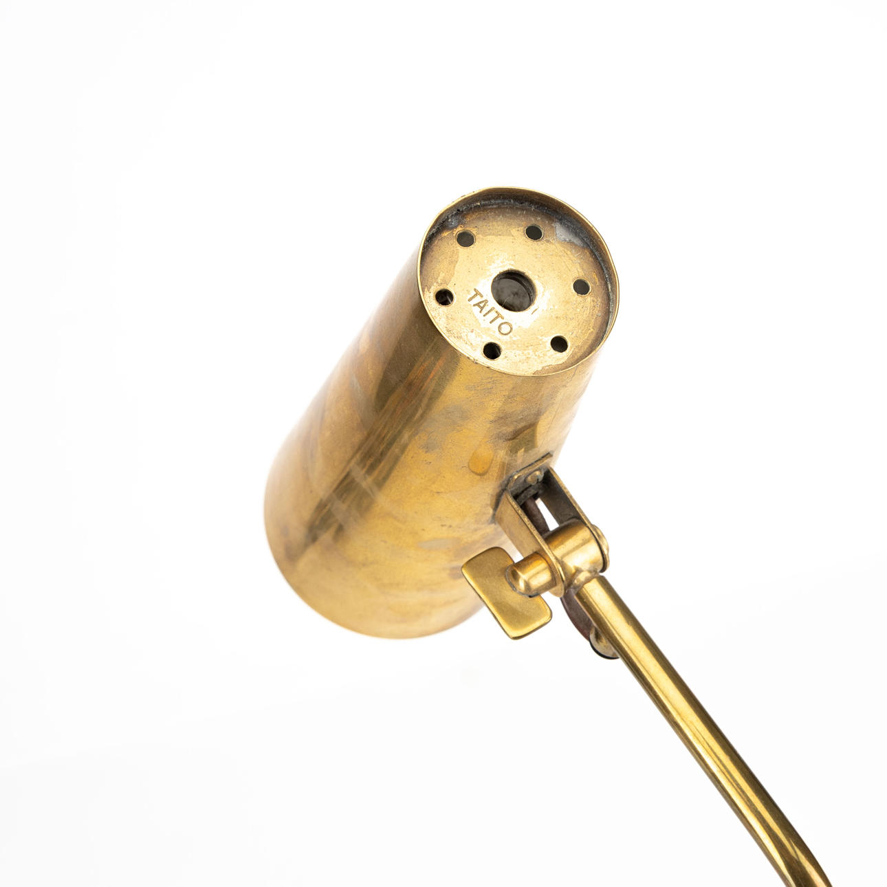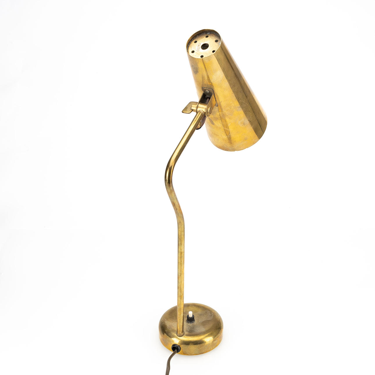 Brass. Internal white lacquered screen, adjustable direction. Taito stamp. Height 46 cm.