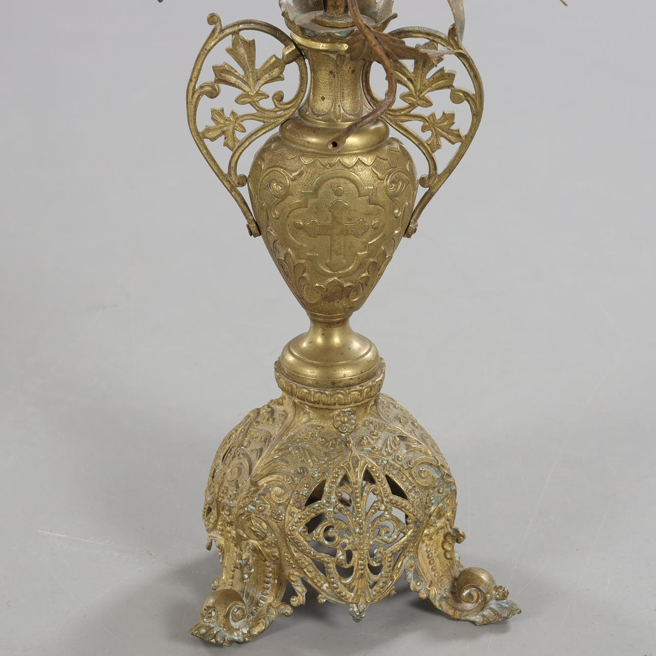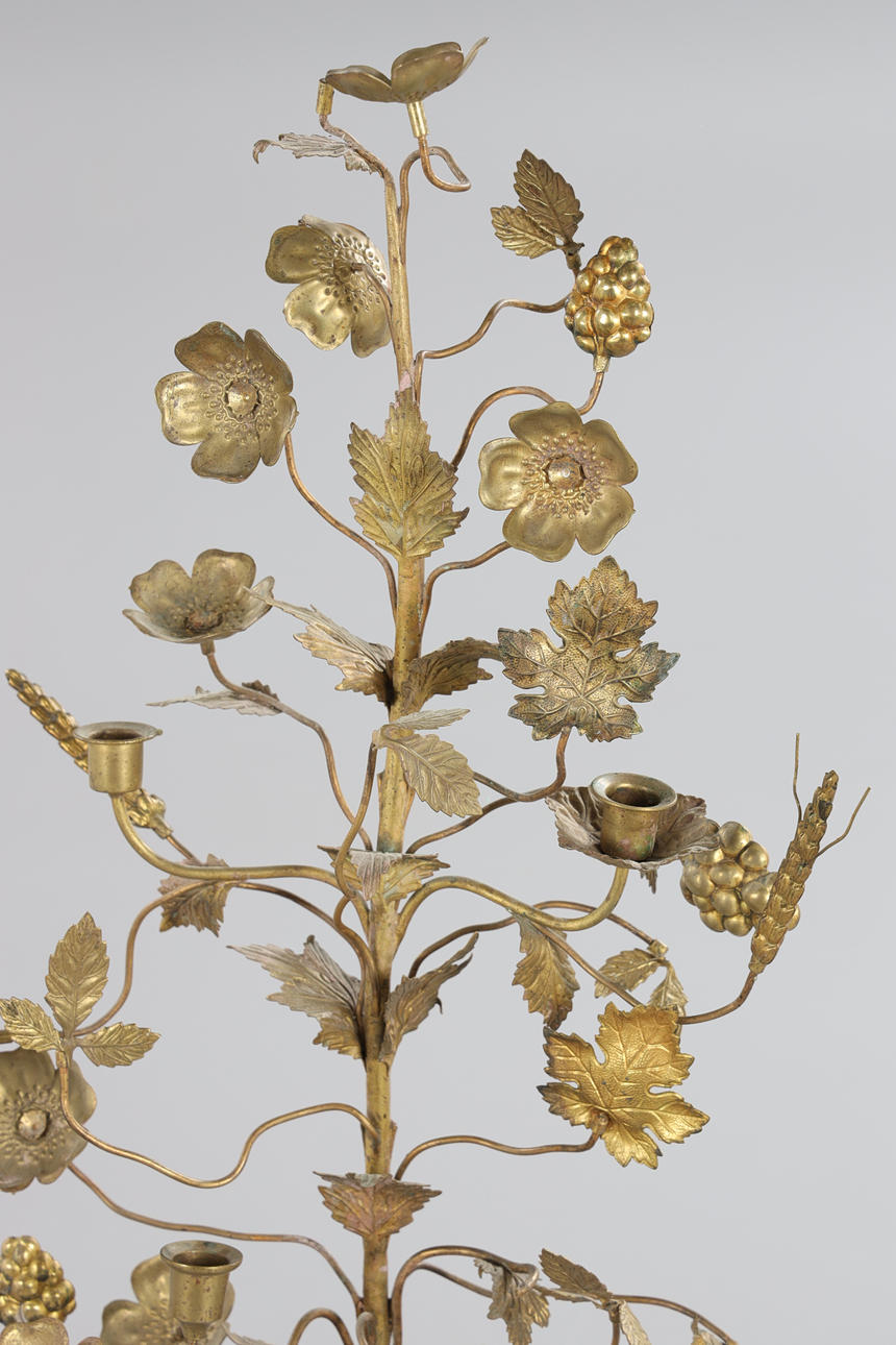 So-called harvest candelabra, in brass and yellow metal. Five candlesticks. Around the turn of the century 1900. Height approx. 114 cm. Diameter approx. 42 cm.