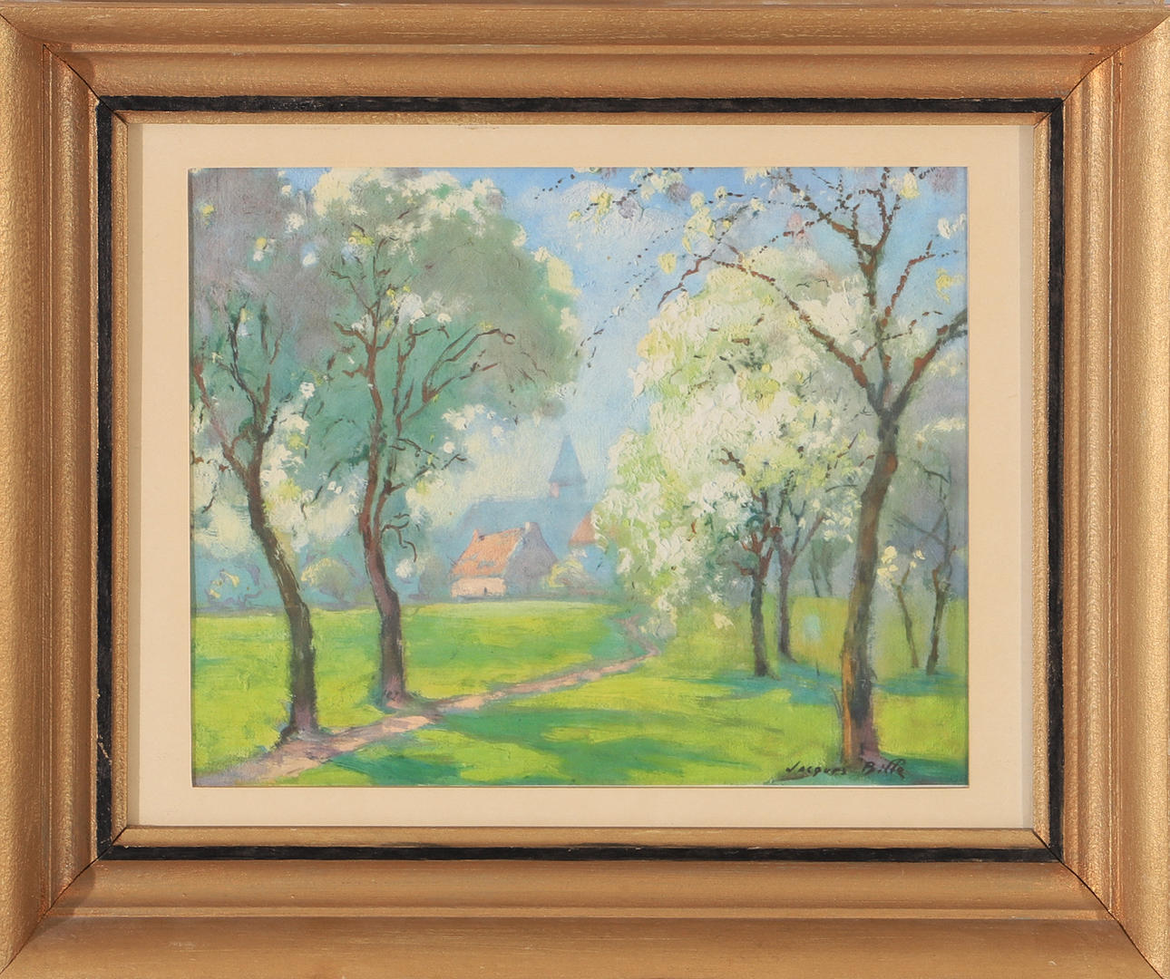 2193873. JACQUES BILLE. Park motif, mixed media, signed.