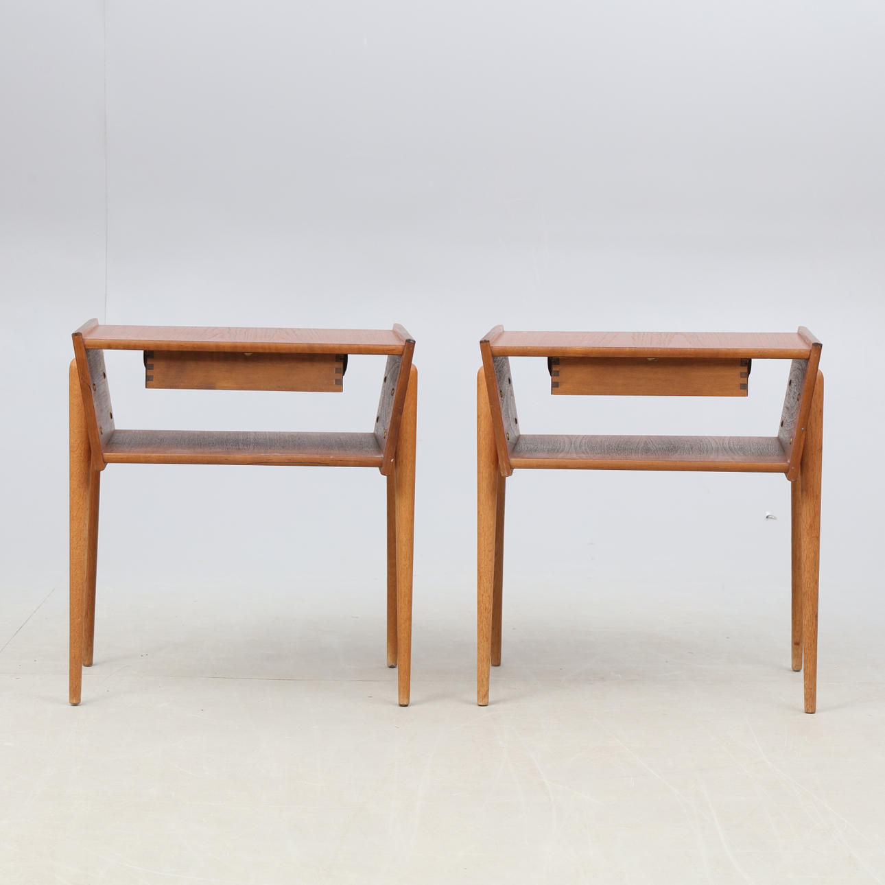 2195075. BEDSIDE TABLE with box, a pair, teak, mid 20th century.