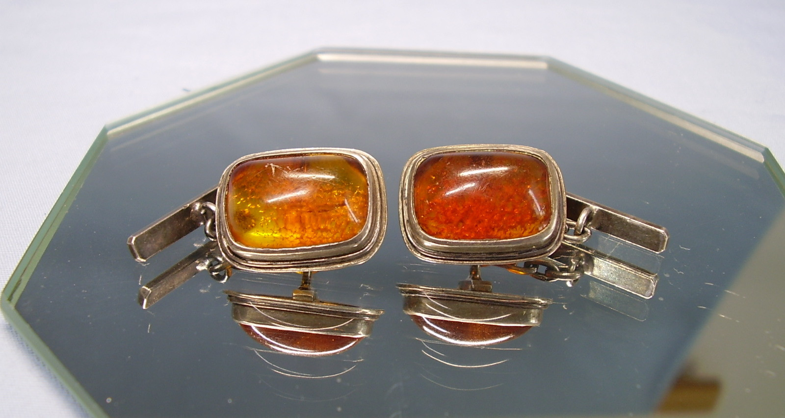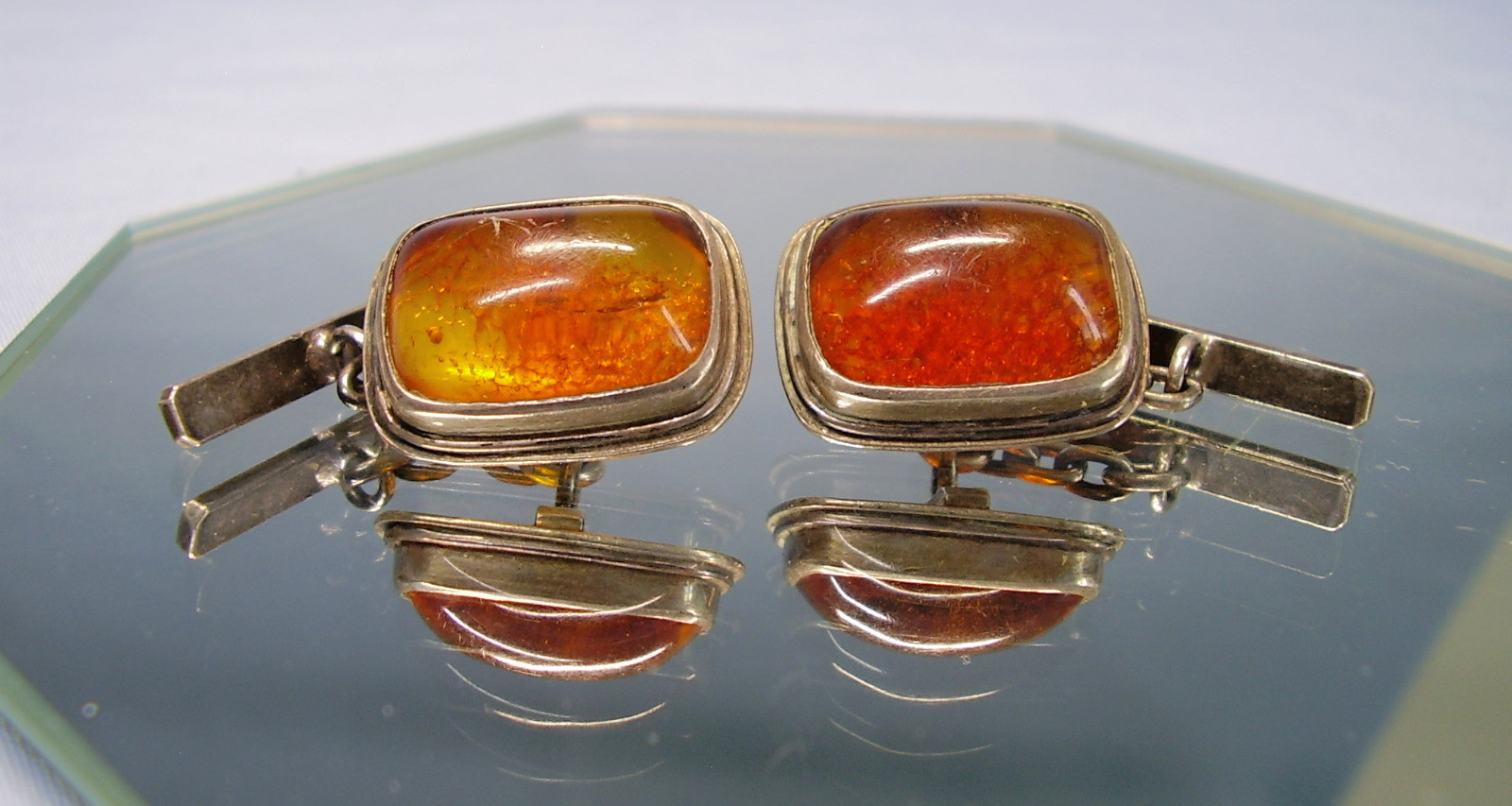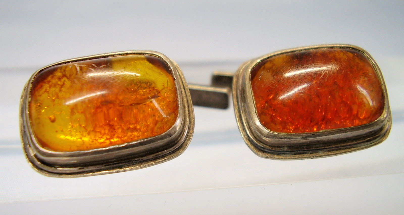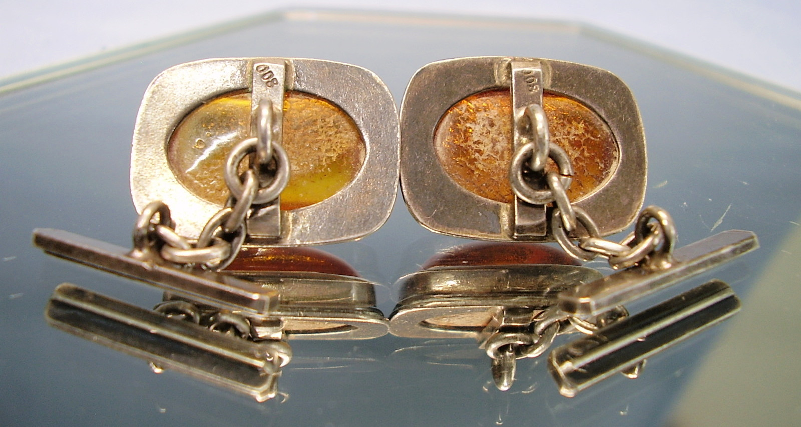 2201884. AMBER CUFFLINKS ANTIQUE SILVER 800.