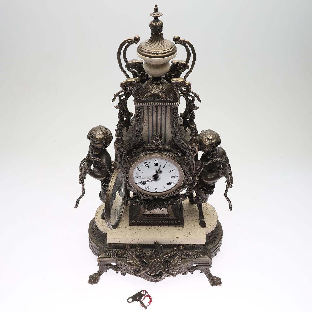 2207316. TABLE CLOCK, Metal and stone, Classic style, 19/2000s, Italy.