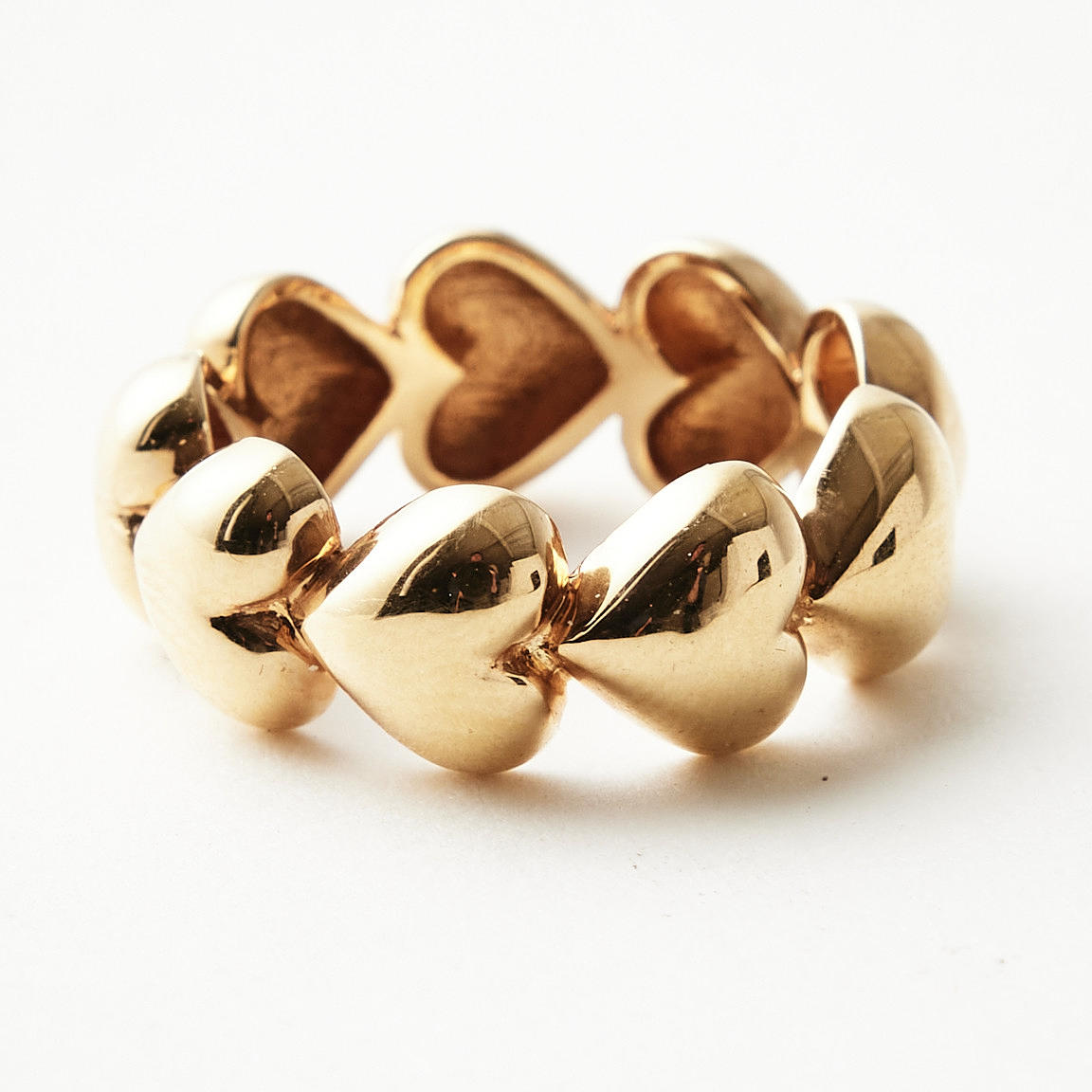 red gold, classic Lynggaard model with linked hearts, polished surface, model A 1403-402, width approx. 8 mm, size approx. 17 compared to 53.5, weight approx. 8.1 g, case Lynggaard included.
