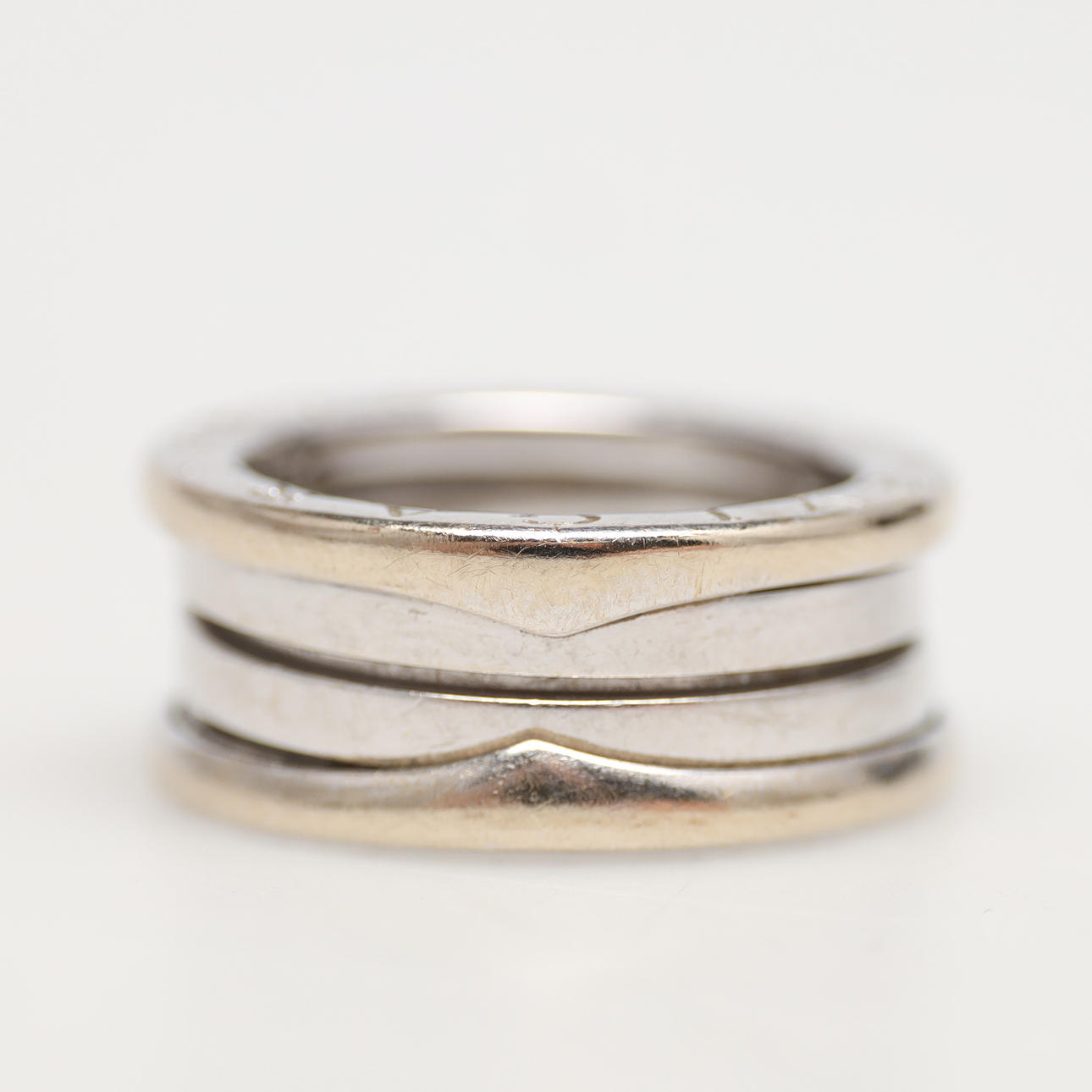 On the sides embossed "BVLGARI", stamped Italy/Alessandria. Width approx. 7 mm, ring size 50 (approx. 16 mm), weight approx. 8.7 grams. Original box included.