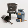 Pot height 15 cm. Leg stand height 13.5 cm. Mortar with impact height 15 cm. Coffee grinder height 20 cm.