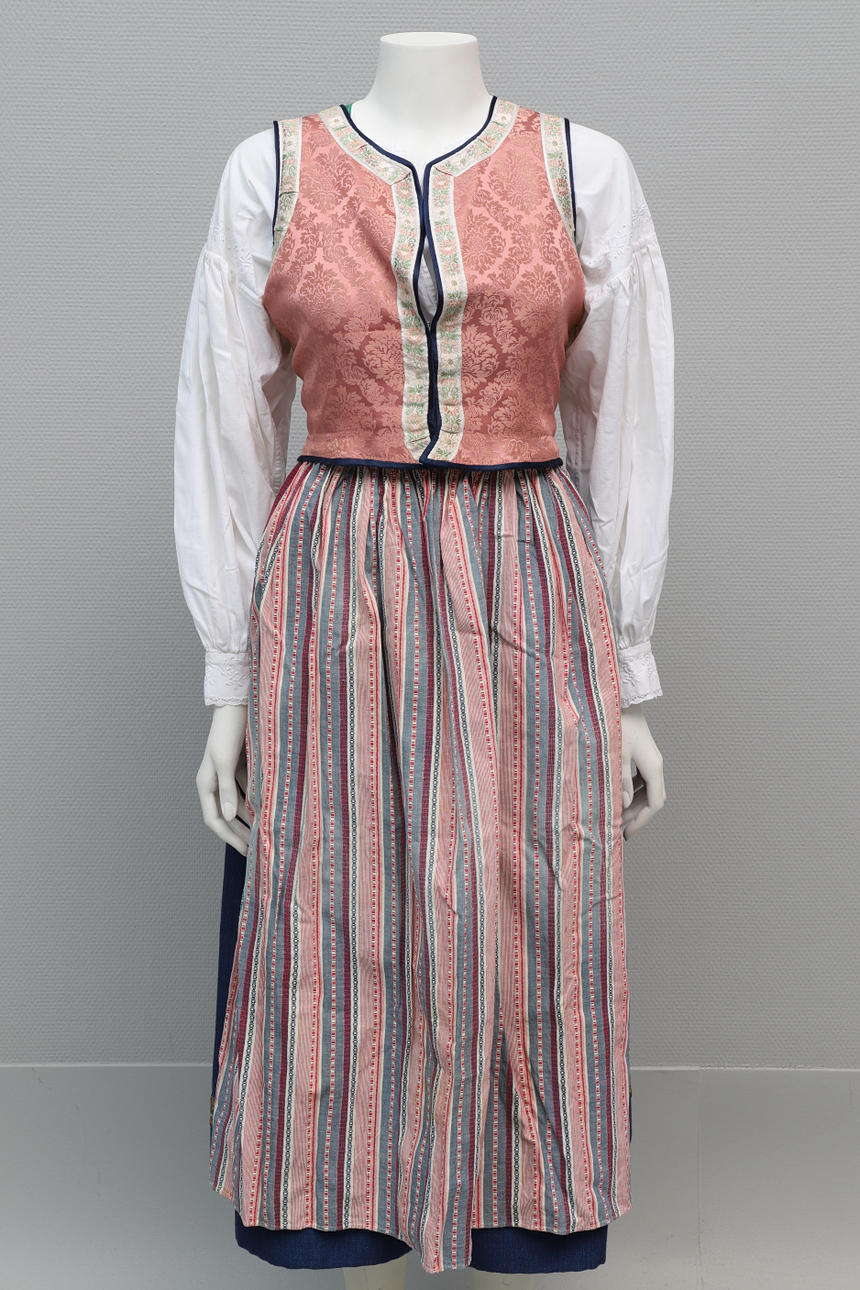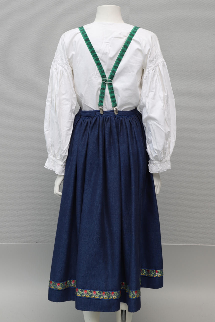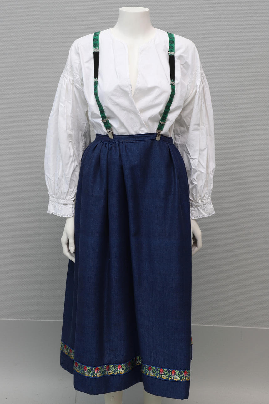 Skirt, woven linen, waist measurement approx. 65 cm, length approx. 84 cm. Vest, sewn in three parts.