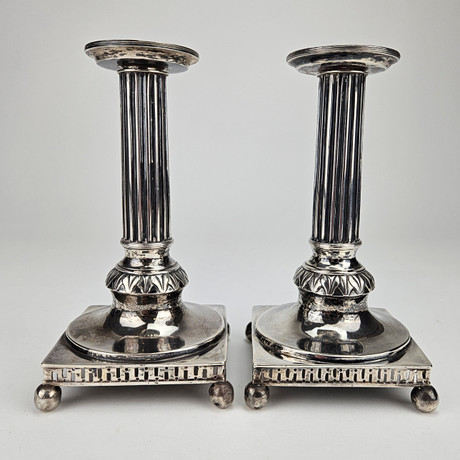 Stained veneer lining with decor of brass inlays. Dial marked "JI (?) Apelqvist Jönköping". Pendulum, plumb line and key available. Width approx. 50 cm, depth 30 cm, height approx. 233 cm.