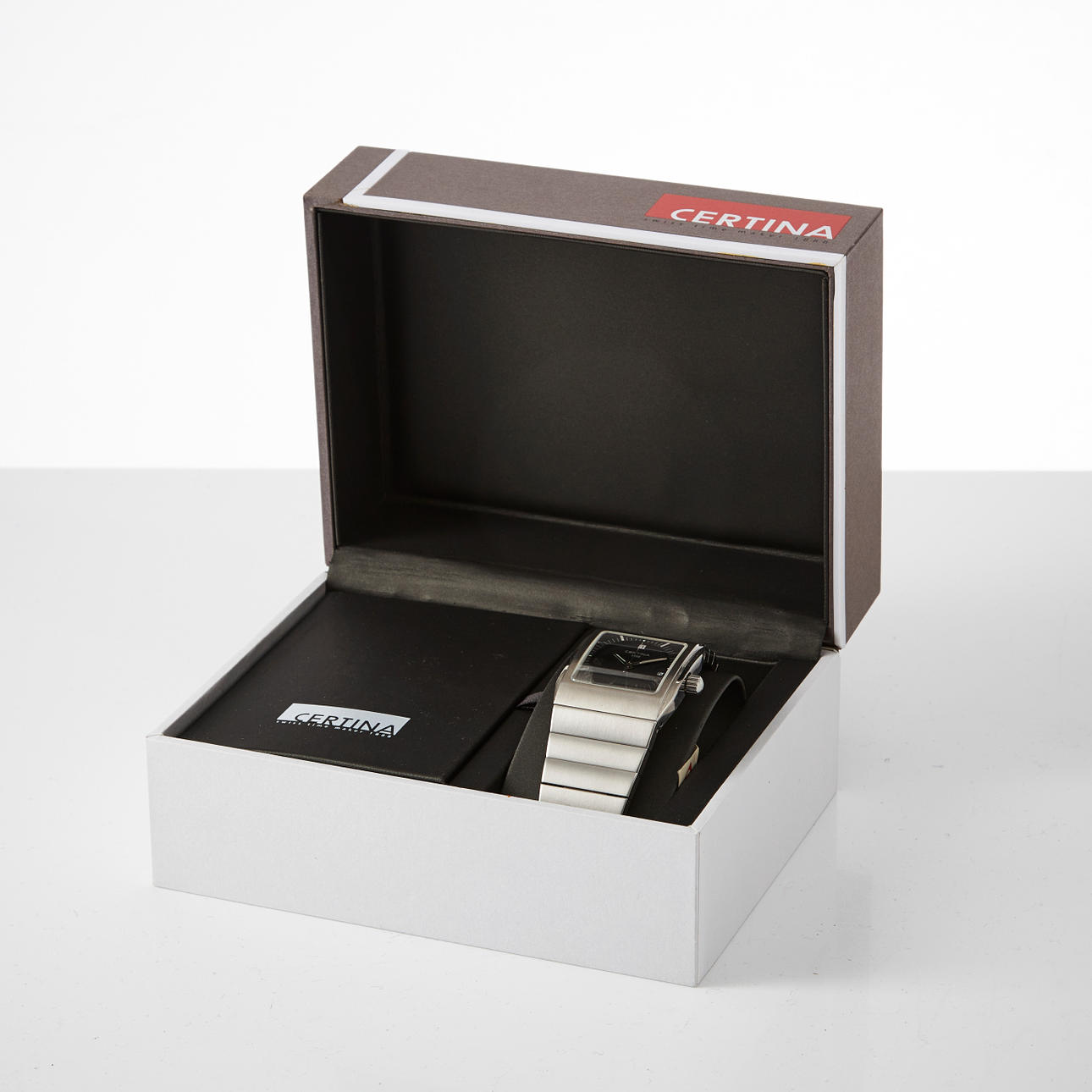 Quartz, sapphire crystal, date, ref. 113.7165.42.61, integrated original link, 33x37 mm, box.