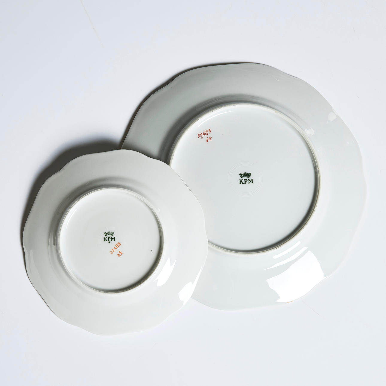 Minor traces of use, gilding partly with wear, a terring with minor glaze defects, a small plate with a Chips, a plate with a Chips.
