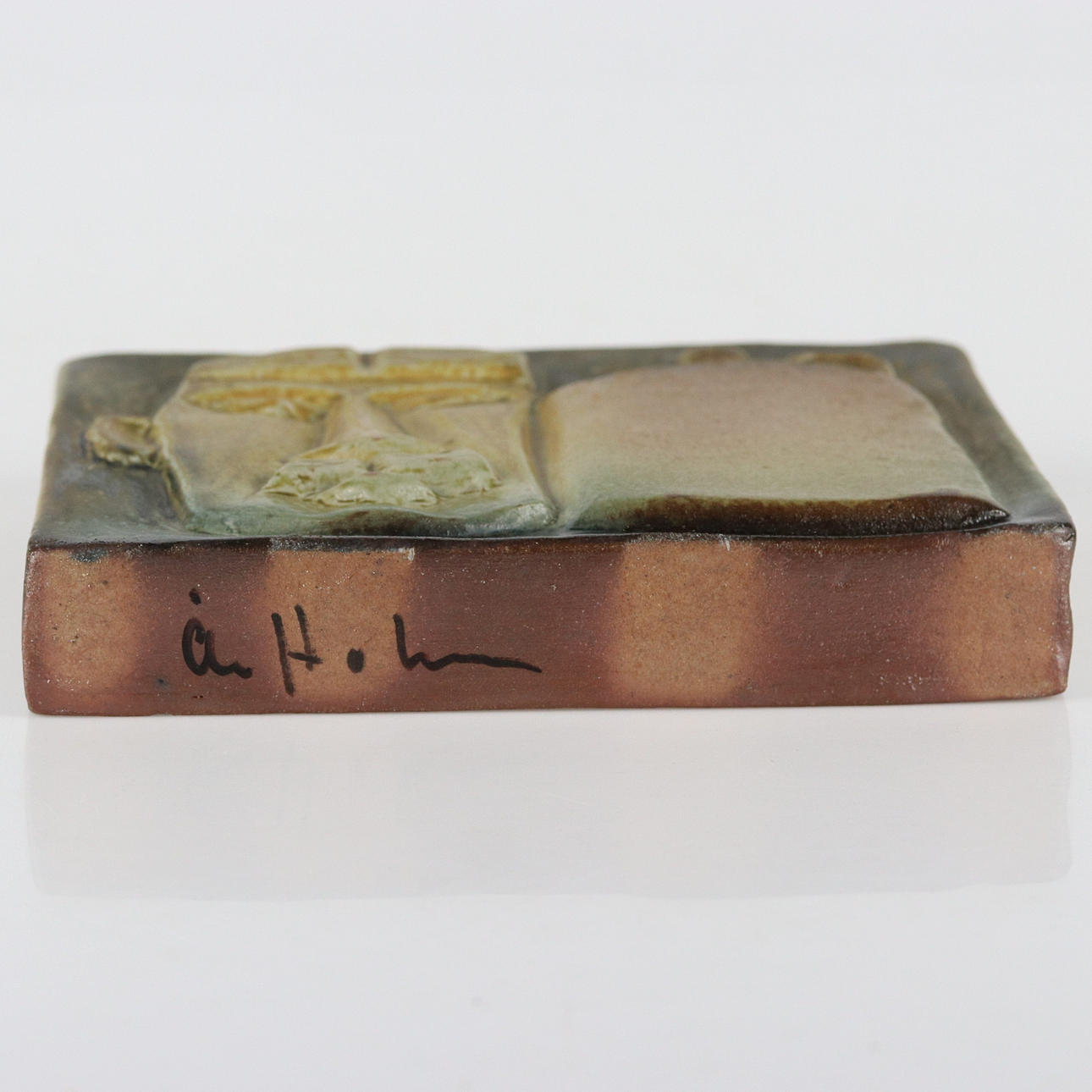 2219203. ÅKE HOLM. Wall relief/plaque, glazed stoneware, signed.