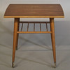 wheels on 2 of the legs, brass end on 2 legs h 60 cm disc 50 x 60 cm.