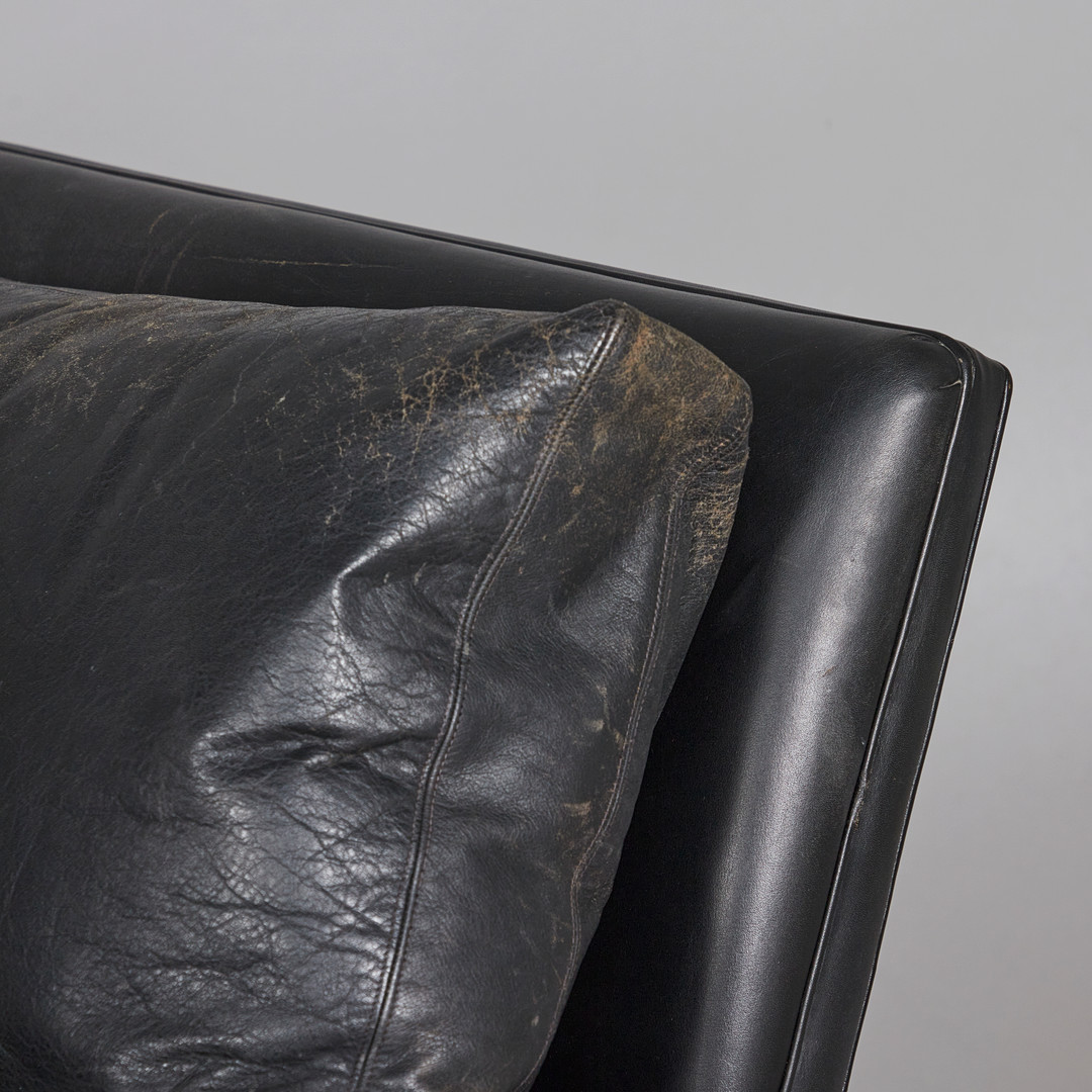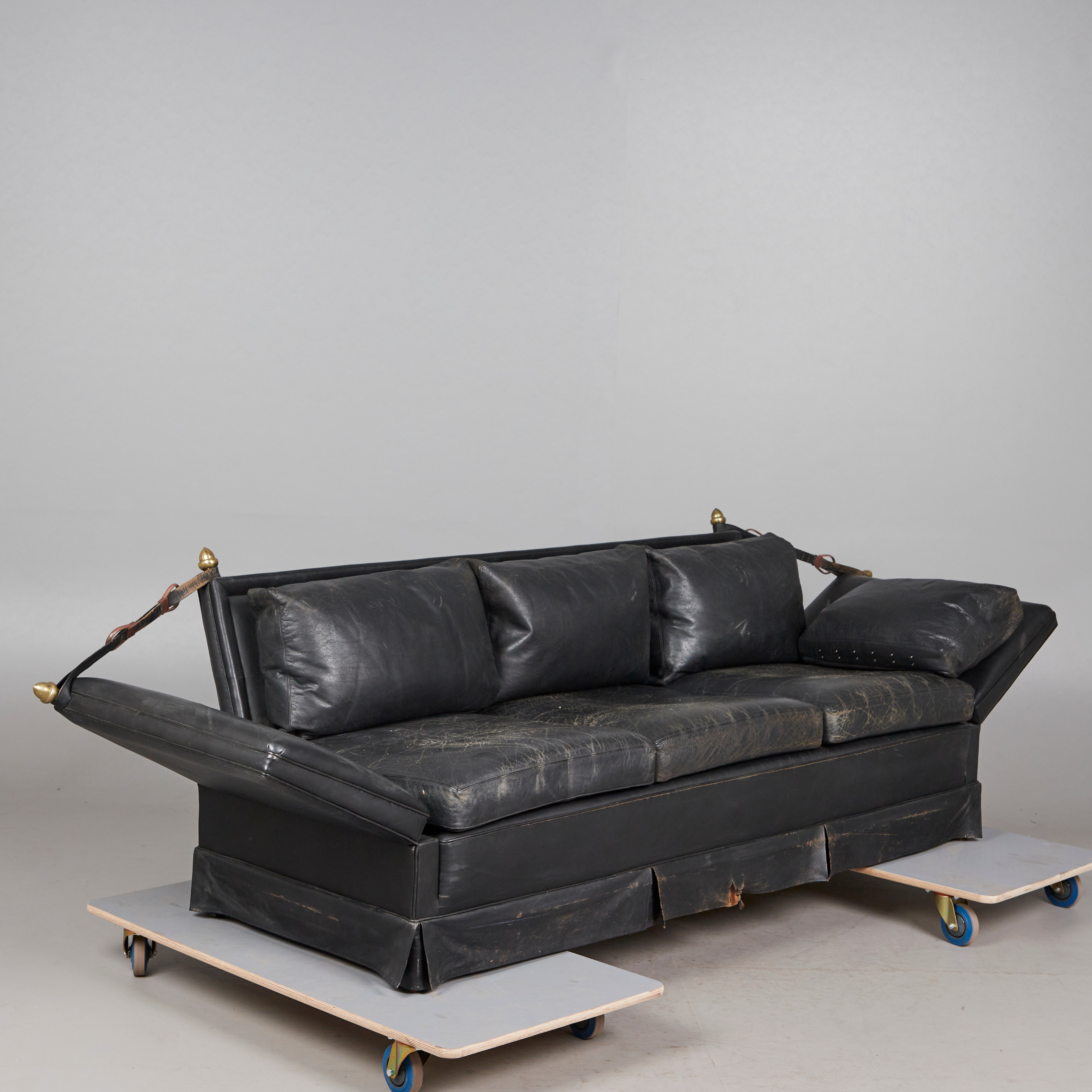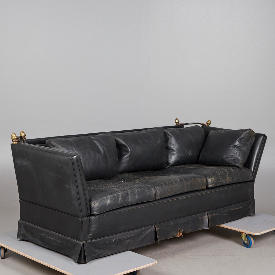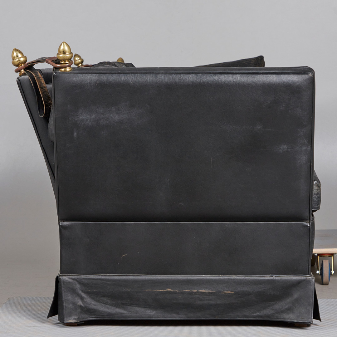 2224222. Three-seater sofa / couch, leather, brass.