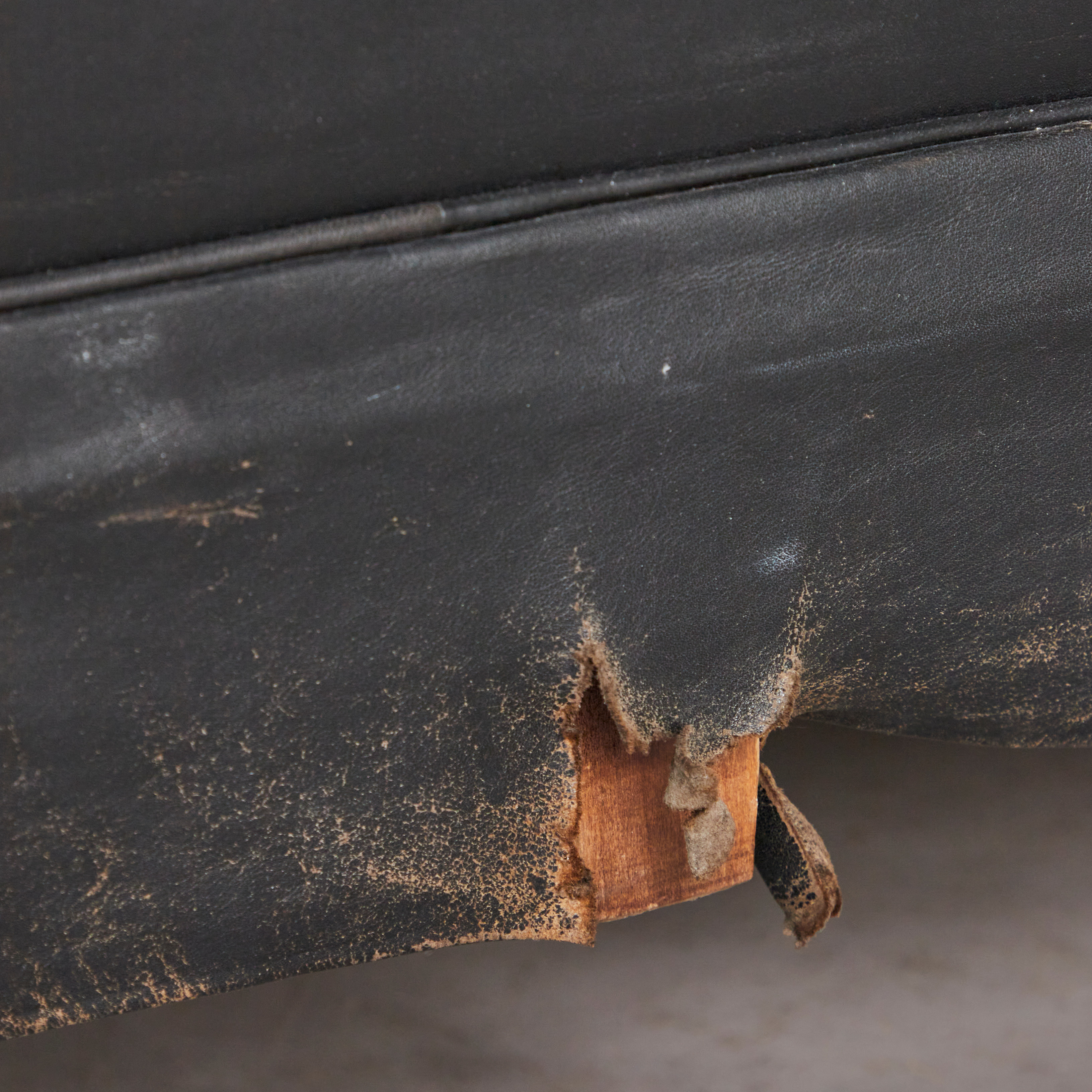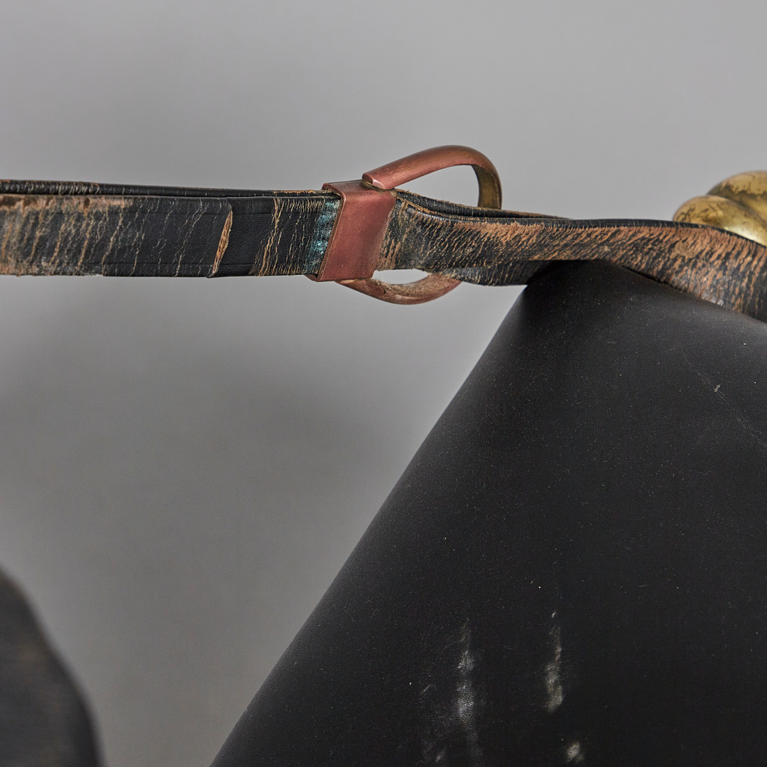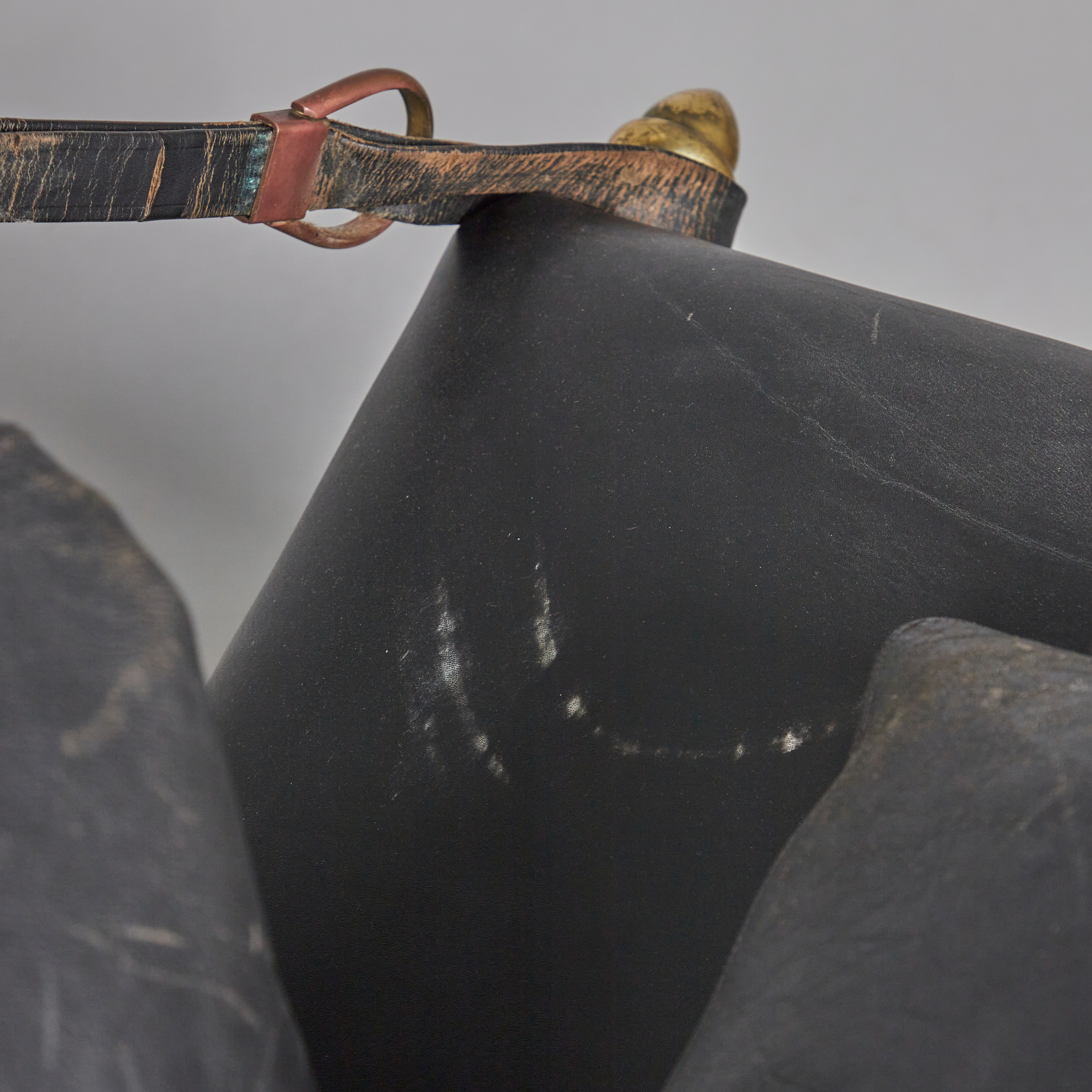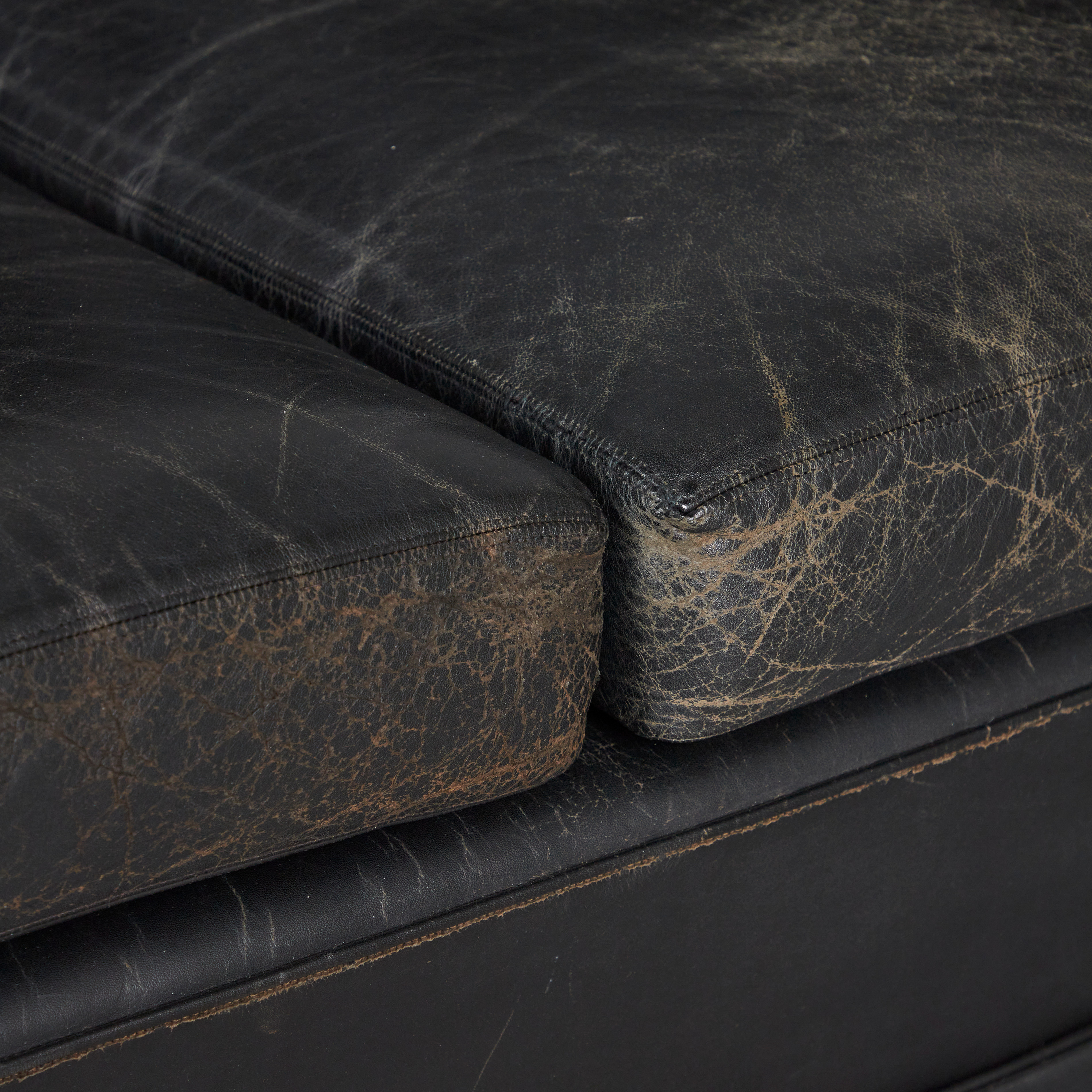 2224222. Three-seater sofa / couch, leather, brass.