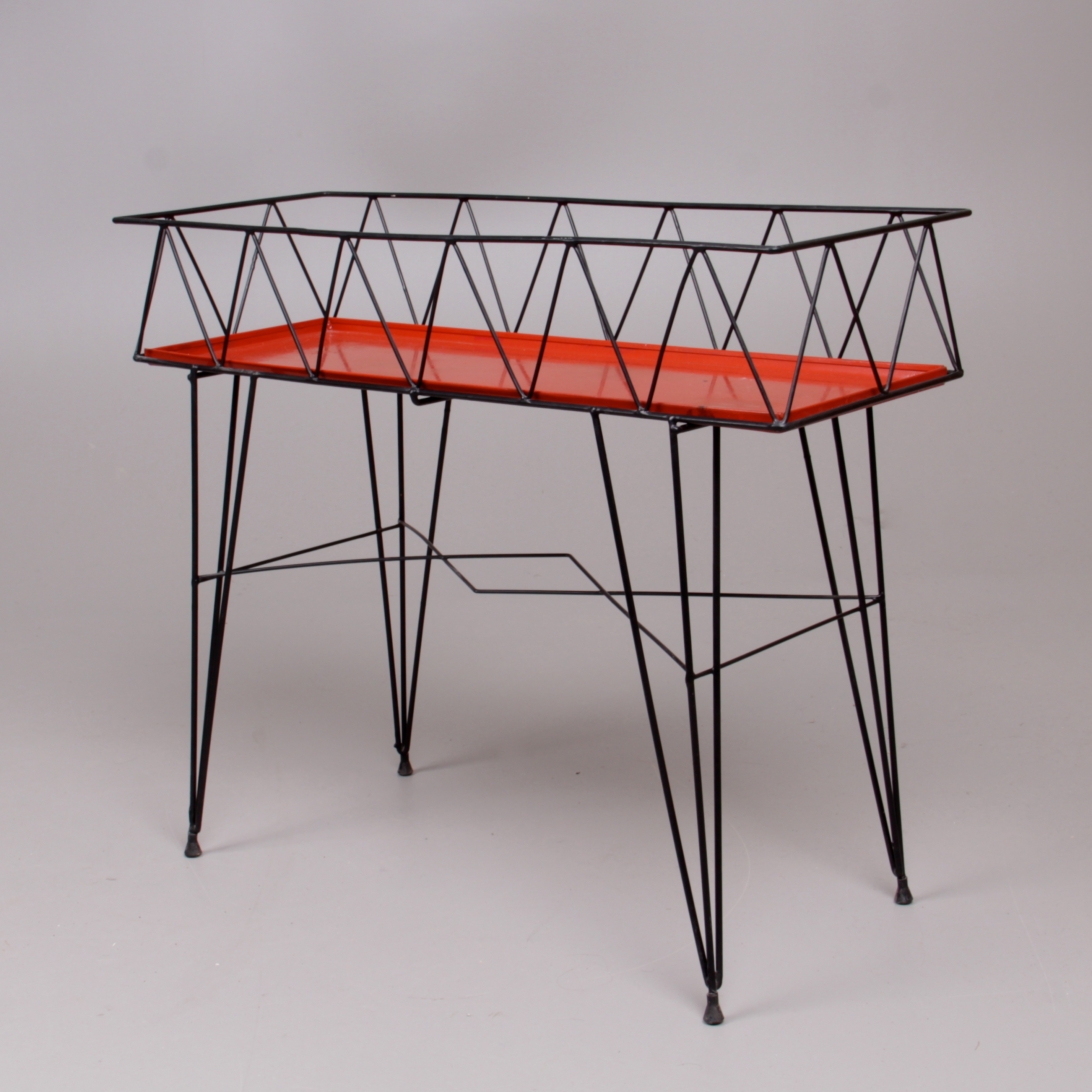 223620. FLOWER TABLE, with sheet metal tray, string 1950s / 60s.