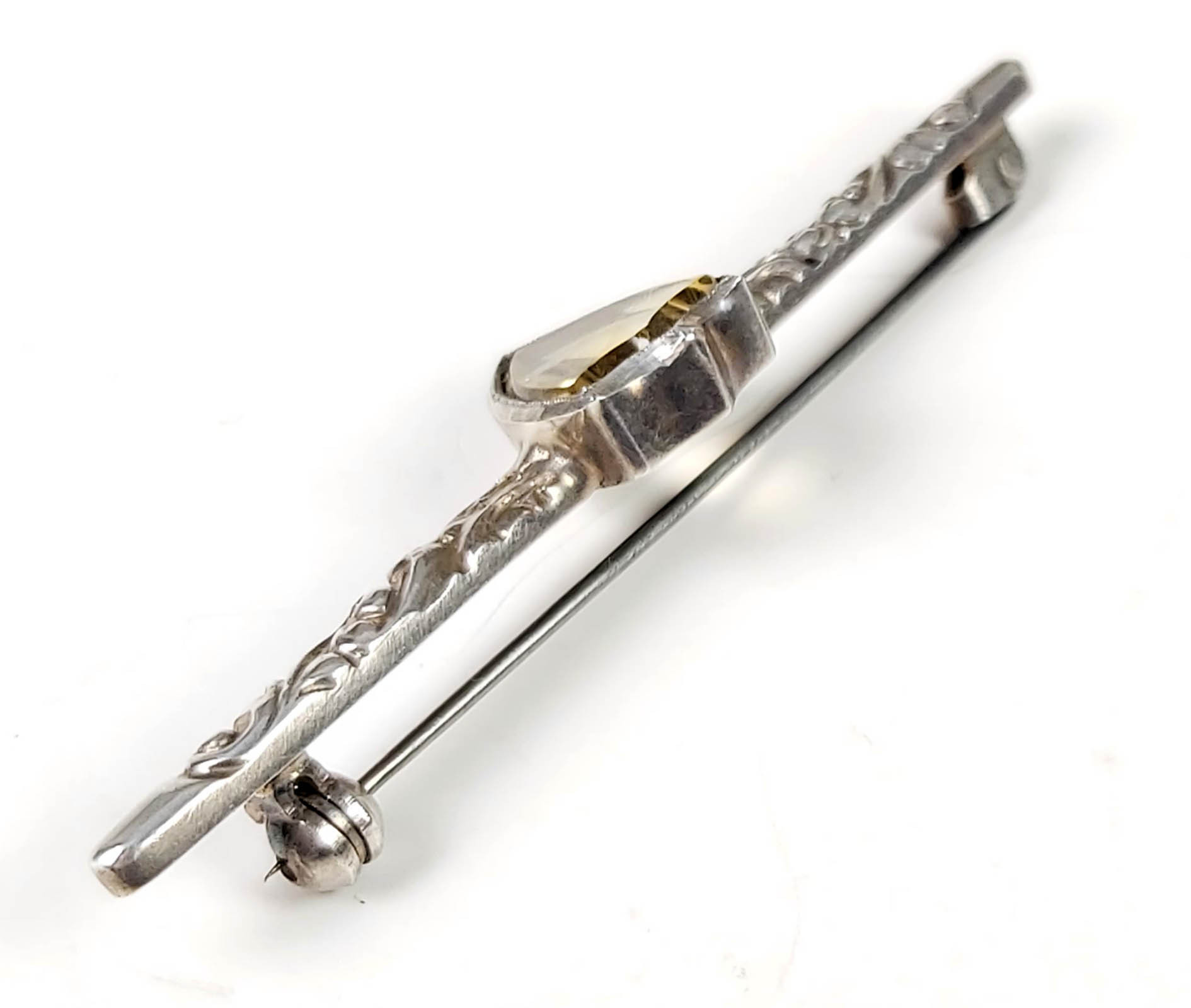 2236433. Antique citrine brooch, silver 800, around 1925.
