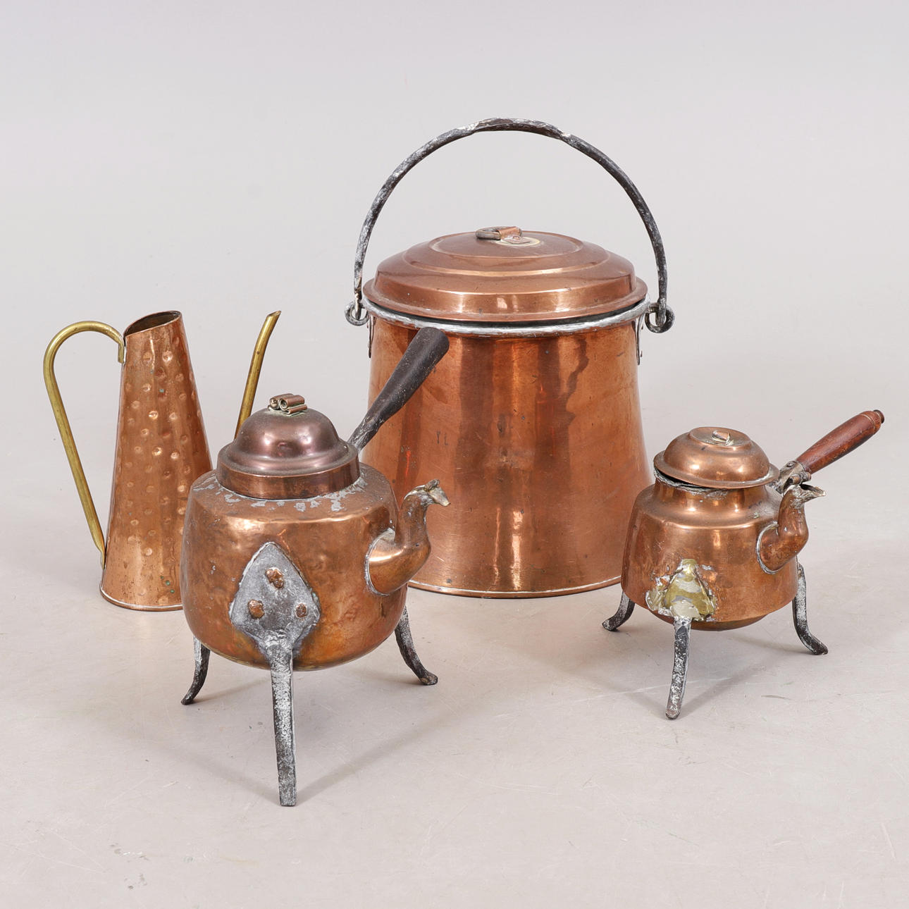 Coffee kettles, bucket, iron kettle, frying pans etc.
