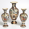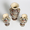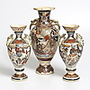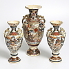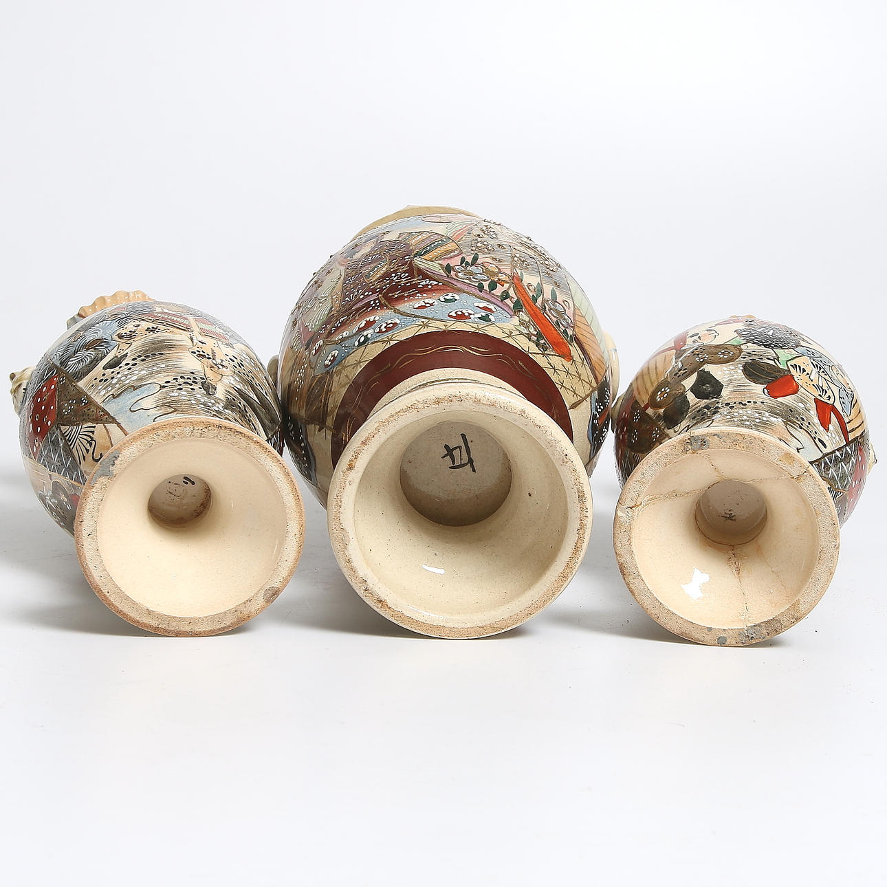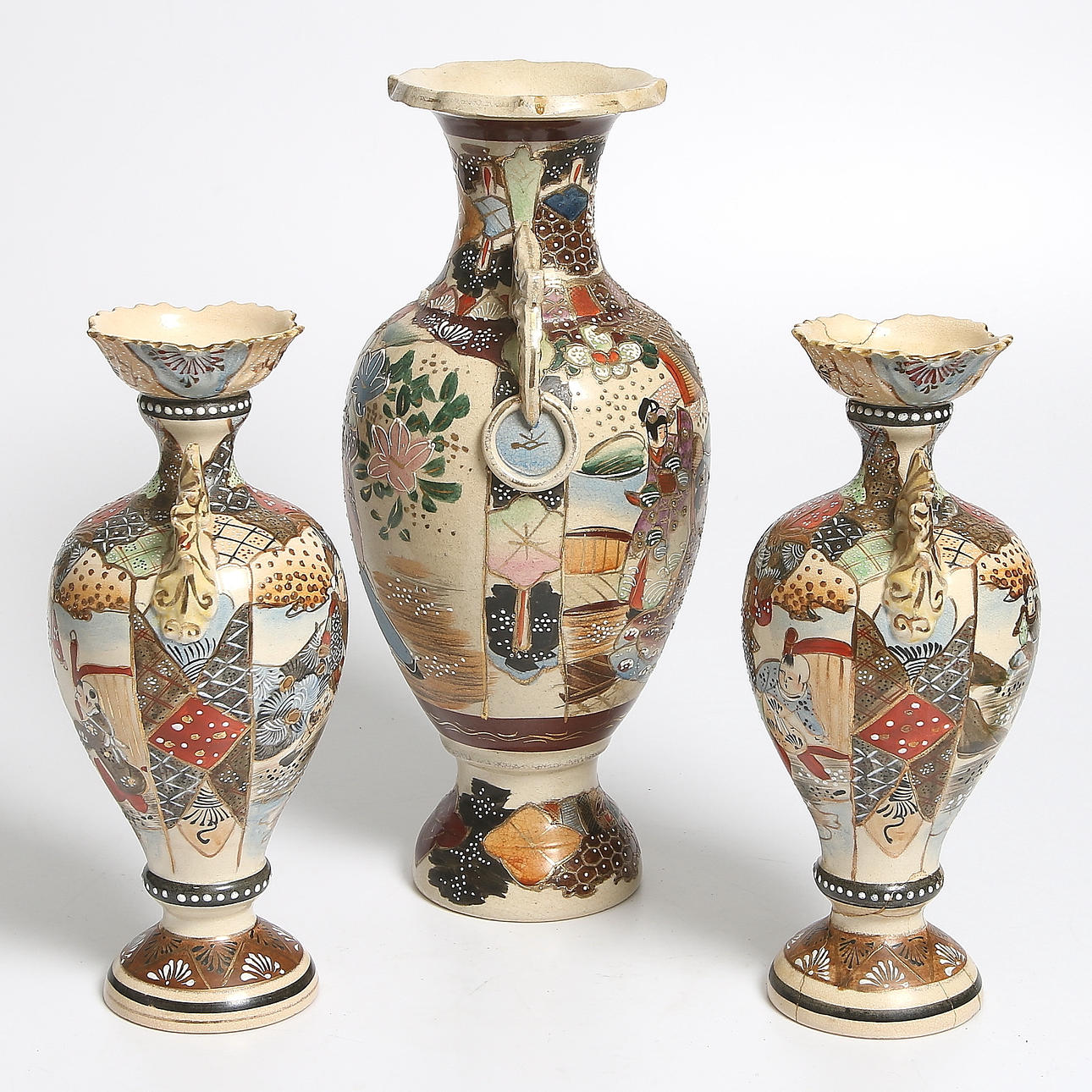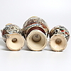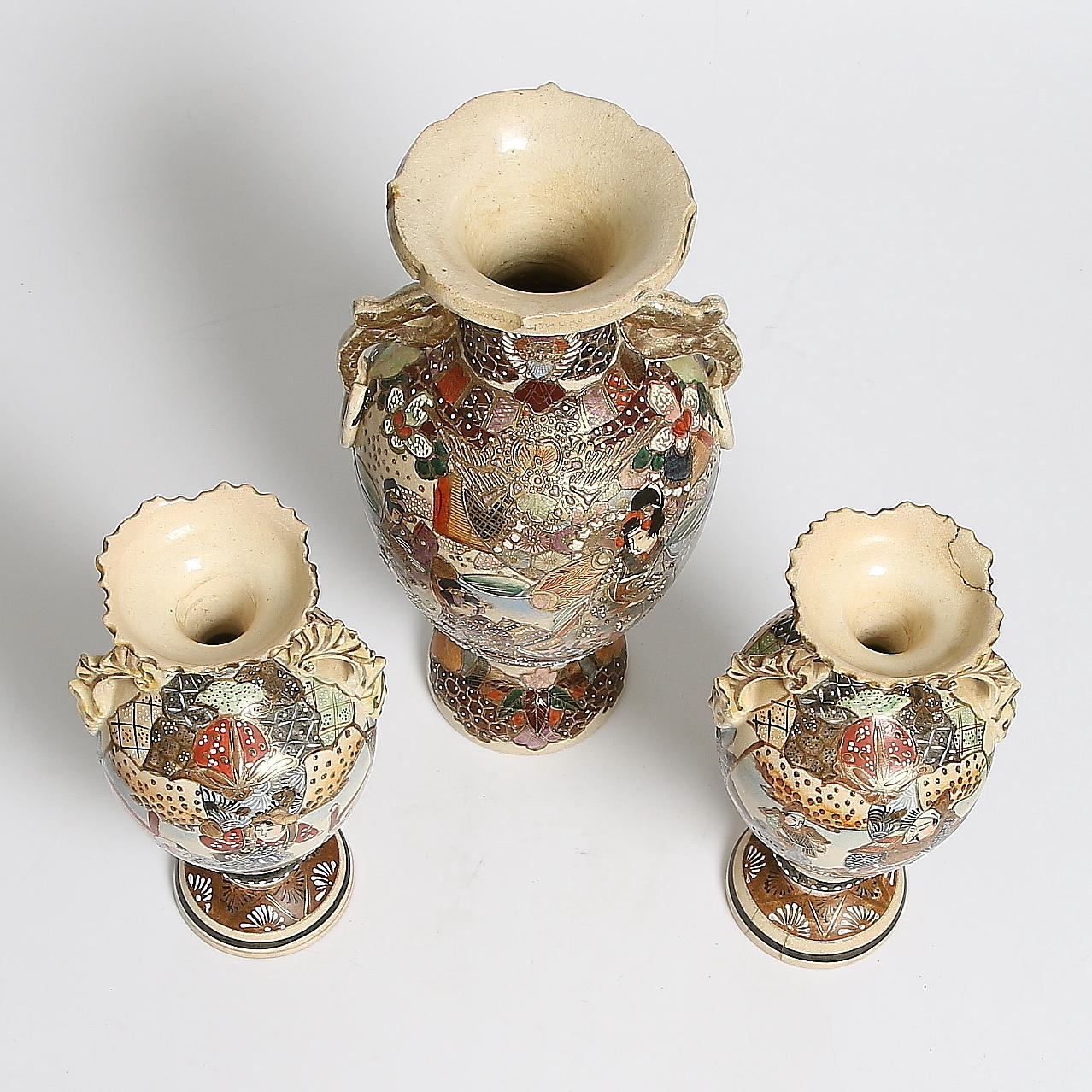 Wear, repairs (on one of the smaller vases), marks, defects.