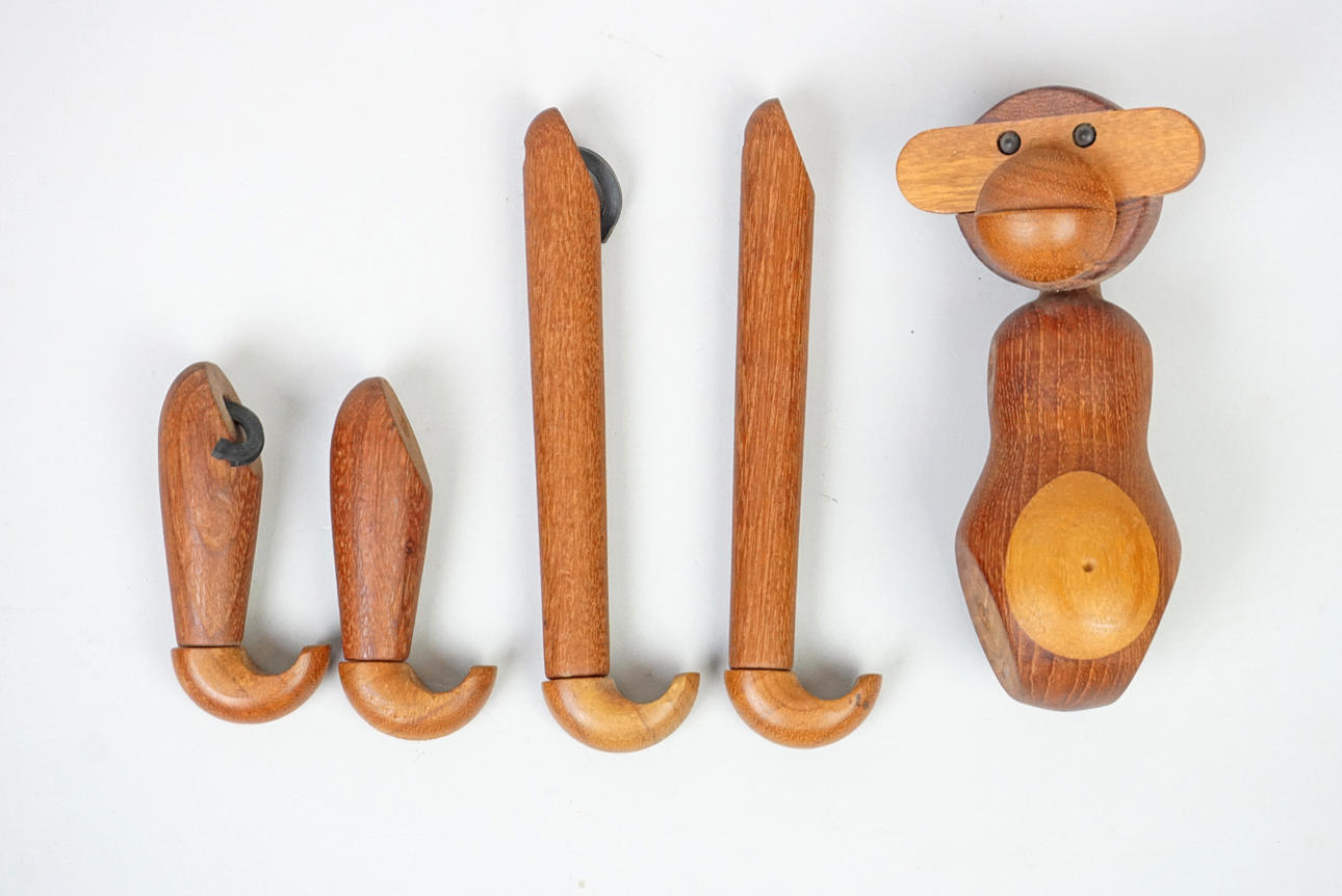 Branded under the foot "Kay Bojesen, Denmark, Copyright". Arms and legs are loose, not assembled and with damaged rubber bands. Length assembled approx. 19 cm. Normal wear and tear.